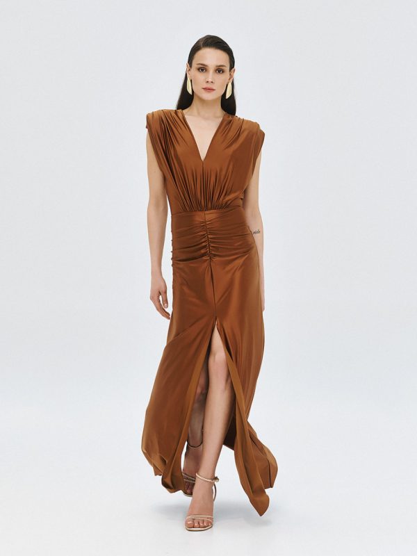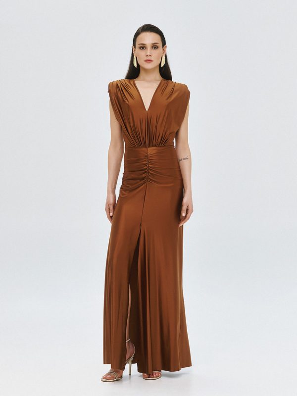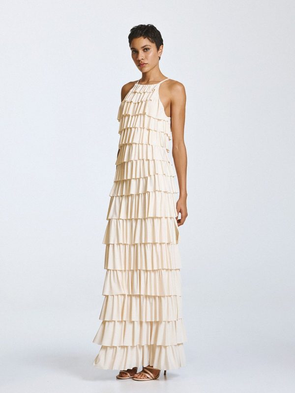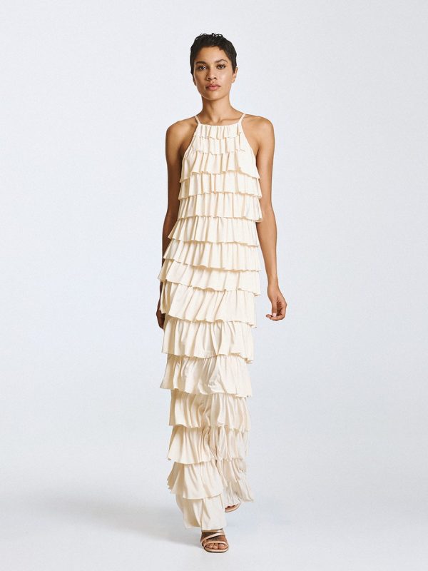 Φόρεμα μακρύ ντεβορέ με βολάν