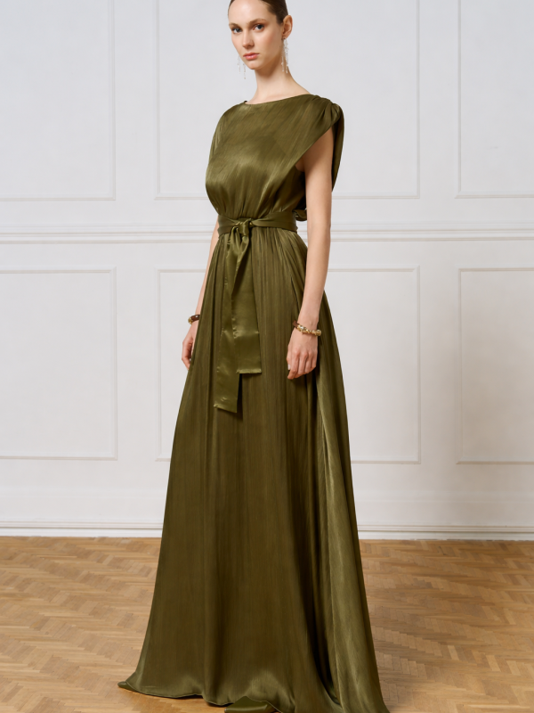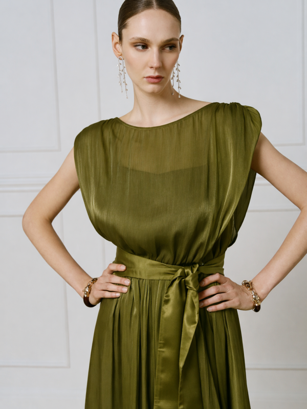 Φόρεμα με ζώνη και μεταλλική τόκα