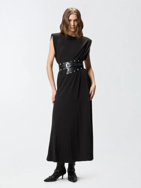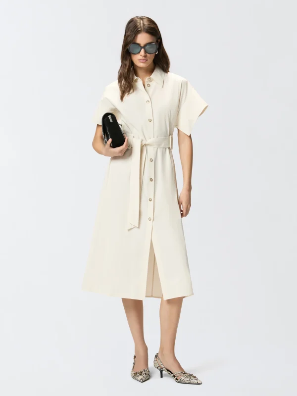Μίντι σεμιζιέ φόρεμα με ζώνη