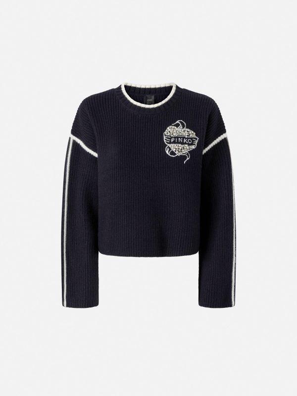 Πουλόβερ με στρογγυλή λαιμόκοψη και κεντήμενα διακοσμητικά