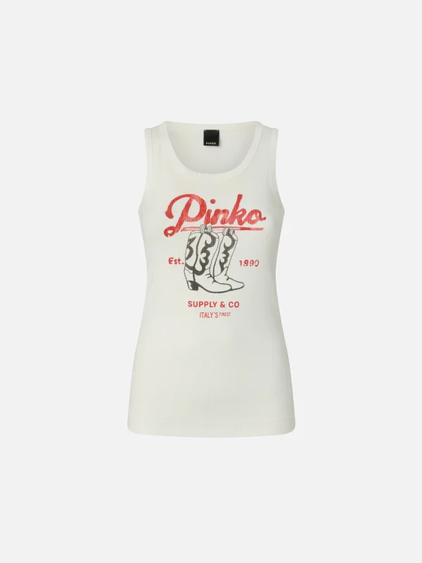 Αμάνικο τοπ με vintage στάμπα