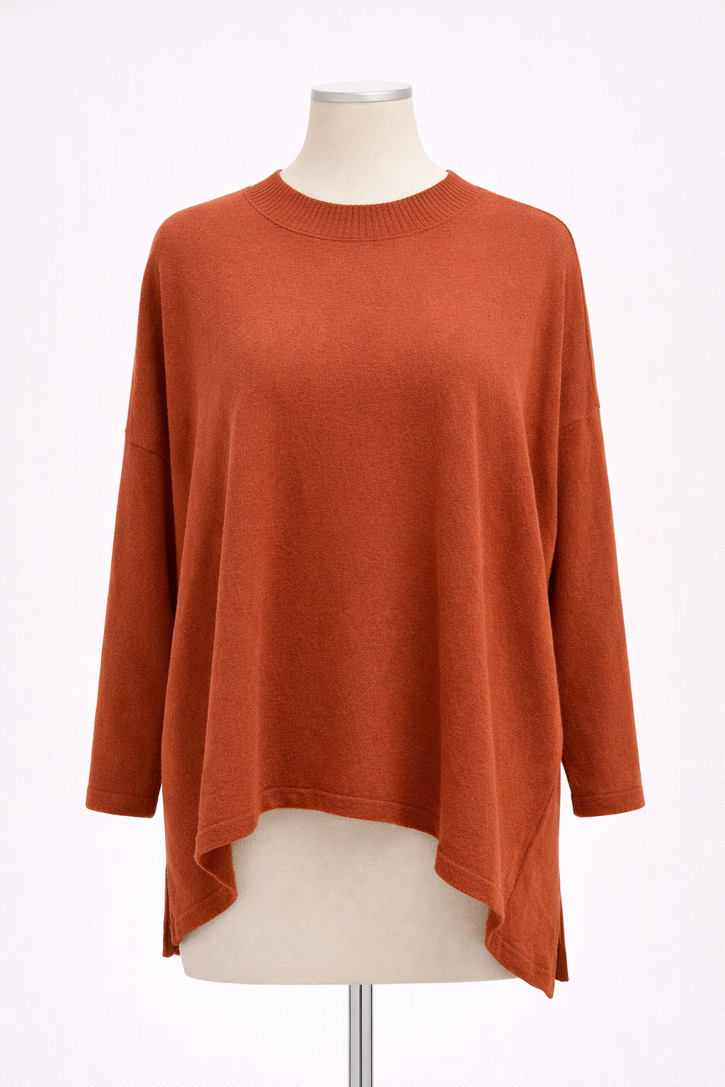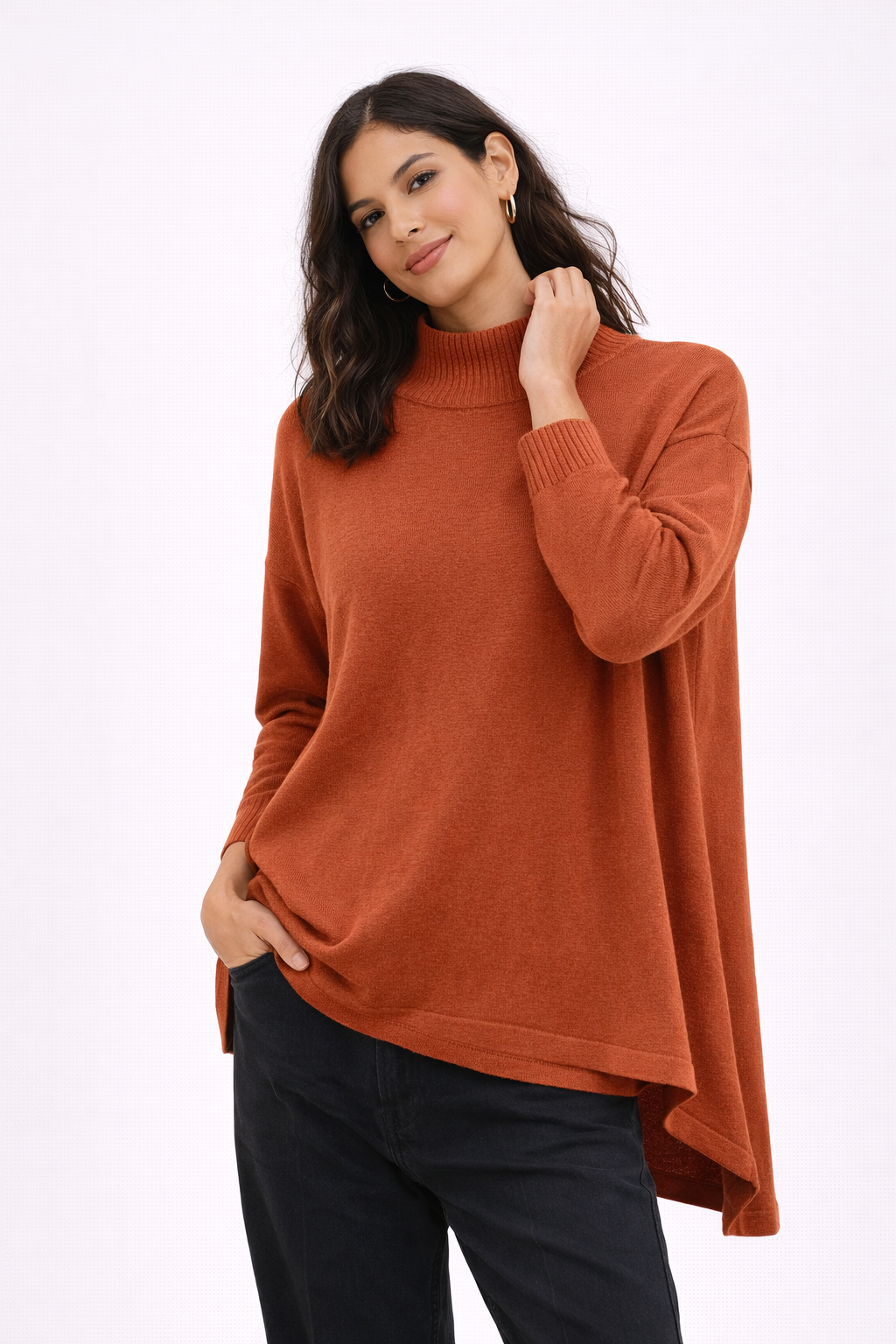 Ασύμμετρο πλεκτό τοπ σε ζεστή απόχρωση κεραμιδί, με χαλαρή εφαρμογή που αγκαλιάζει το σώμα χωρίς να το περιορίζει. Διαθέτει διακριτική λαιμόκοψη με ριπ τελείωμα και ελαφρώς πιο μακρύ πίσω μέρος, προσφέροντας κίνηση και κομψό αποτέλεσμα. Το ύφασμα είναι απαλό και ανάλαφρο, ιδανικό για καθημερινές εμφανίσεις από το πρωί έως το βράδυ. Φοριέται εύκολα με παντελόνια, κολάν ή φούστες και ταιριάζει τόσο σε casual όσο και σε πιο chic looks.