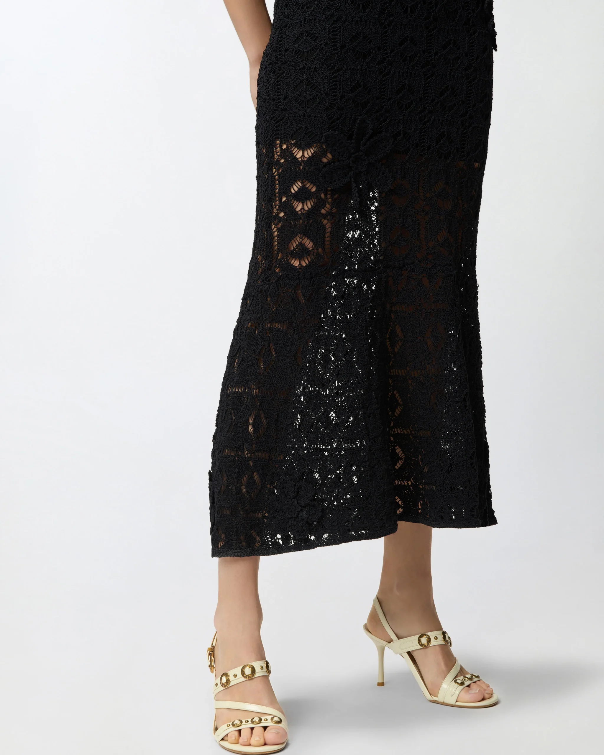 Μίντι φόρεμα με κροσέ όψη και απλικέ λουλούδια
