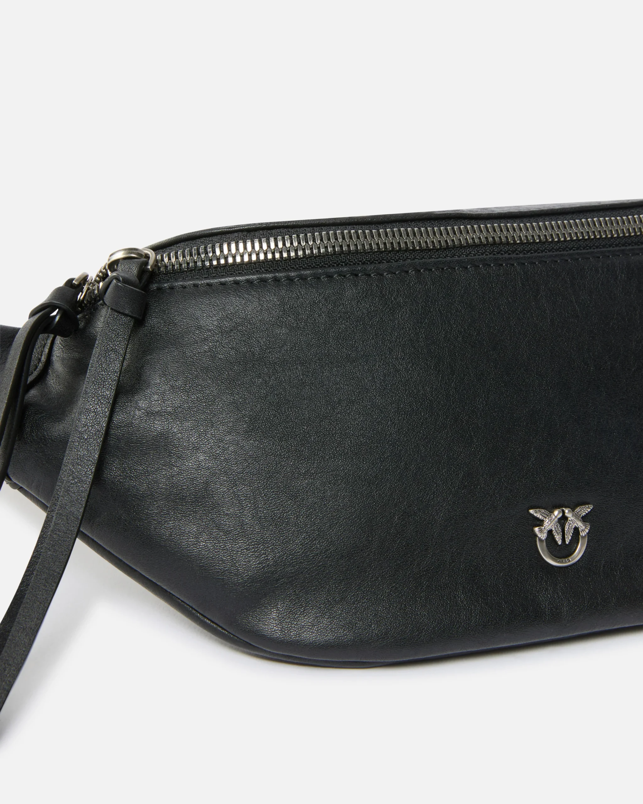 Τσαντάκι μέσης μικρών διαστάσεων από δέρμα new biker, ιδιαίτερα εύχρηστο και πρακτικό, ιδανικό για να σας συνοδεύει και στα ταξίδια σας. Το λεπτό, ρυθμιζόμενο δερμάτινο λουρί έχει σχεδιαστεί ώστε να προσφέρει όχι μόνο την κλασική εφαρμογή στη μέση, αλλά και δυνατότητα μεταφοράς στον ώμο ή χιαστί, με απόλυτο western στυλ: η άκρη, η αγκράφα και το θηλύκι είναι διακοσμημένα με περίτεχνα χαραγμένα σχέδια εμπνευσμένα από τη χαρακτηριστική διακόσμηση της country ένδυσης. Το τσαντάκι, διακοσμημένο με την εμβληματική μεταλλική πλακέτα με το λογότυπο Love Birds Diamond Cut, διαθέτει πρακτικό κλείσιμο με φερμουάρ διπλής κατεύθυνσης στο επάνω μέρος και δερμάτινες λαβές, καθώς και εσωτερικό φοδραρισμένο με βαμβακερό ντρίλι με ετικέτα με το λογότυπο και εσωτερική τσέπη στο τοίχωμα που κλείνει με φερμουάρ. Ενεργοποιήστε το αξεσουάρ σας PINKO: επαληθεύστε τη γνησιότητα του προϊόντος σας και αποκτήστε πρόσβαση στην εξατομικευμένη εμπειρία πλησιάζοντας το smartphone σας στο κέντημα Love Birds στην πίσω πλευρά!