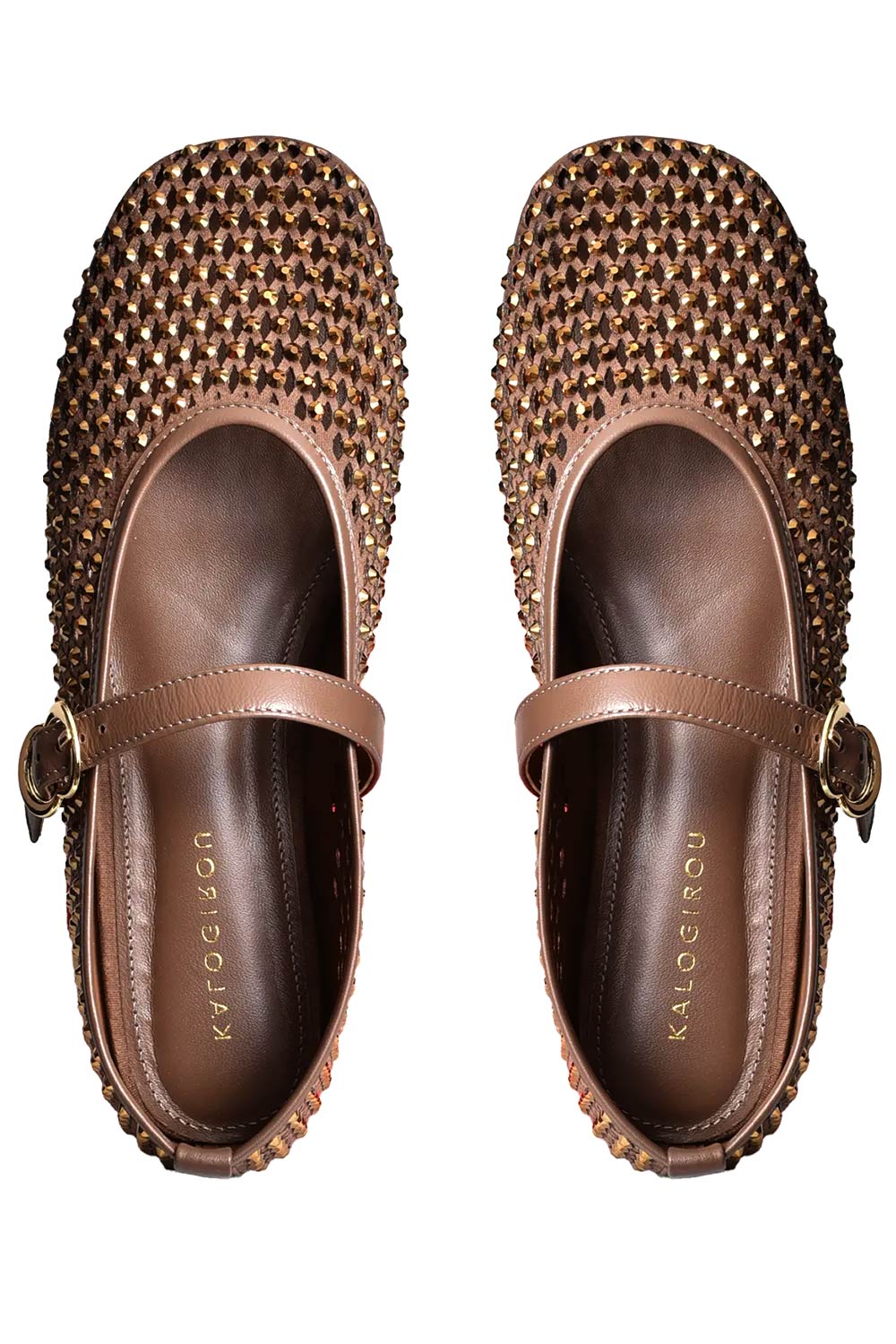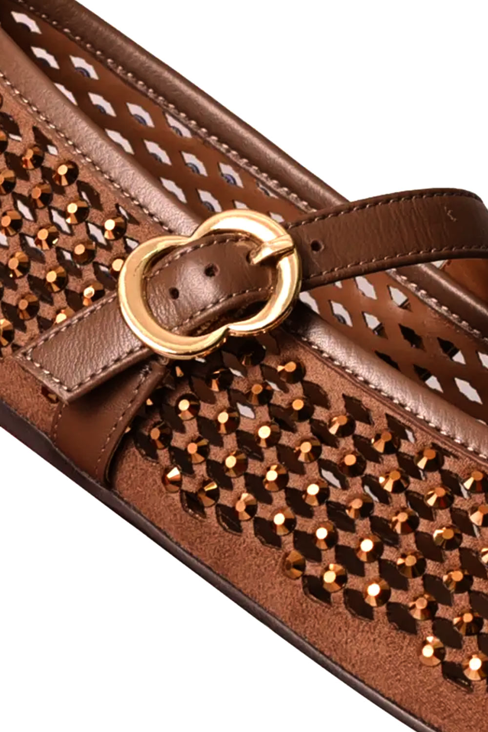 Οι γυναικείες μπαλαρίνες σε brown gold απόχρωση είναι η ιδανική επιλογή για γυναίκες που θέλουν να συνδυάζουν κομψότητα, θηλυκότητα και άνεση σε κάθε τους εμφάνιση. Το ιδιαίτερο σχέδιό τους ξεχωρίζει χάρη στη λαμπερή επιφάνεια με διακοσμητικά strass σε όλο το επάνω μέρος, δημιουργώντας ένα εντυπωσιακό αποτέλεσμα που τραβά τα βλέμματα.