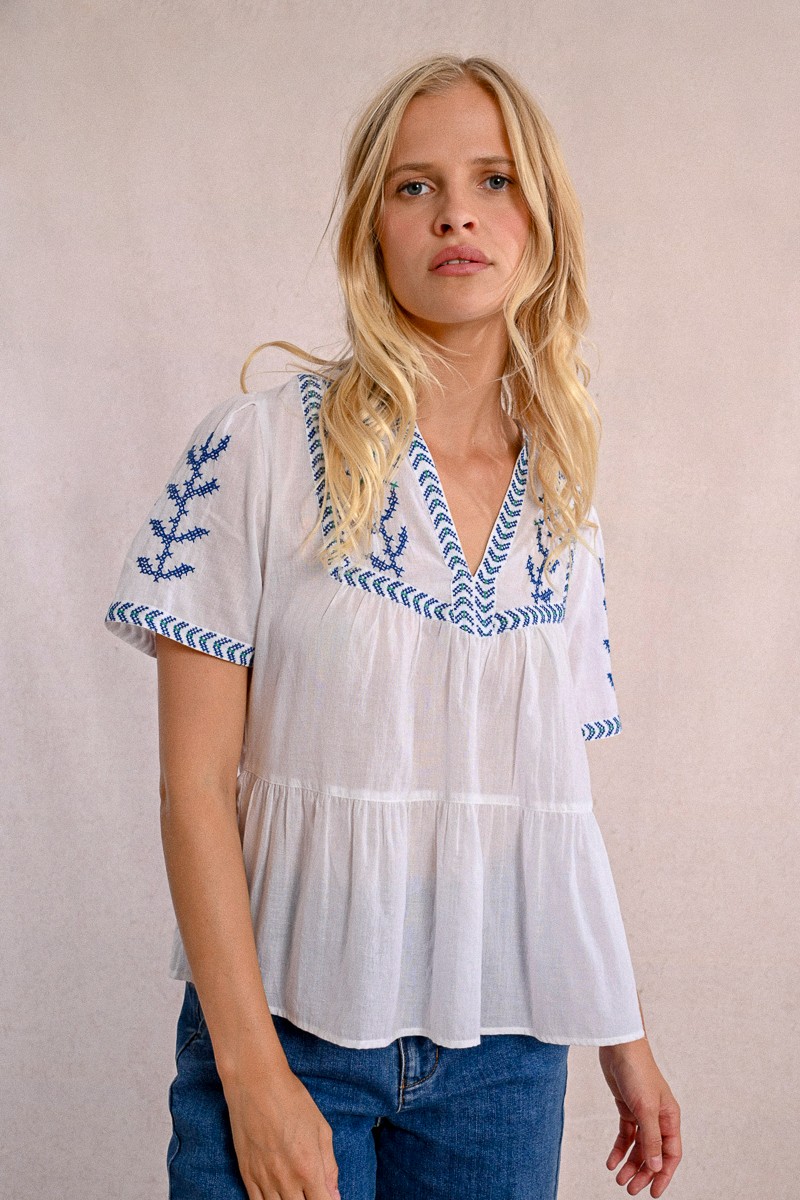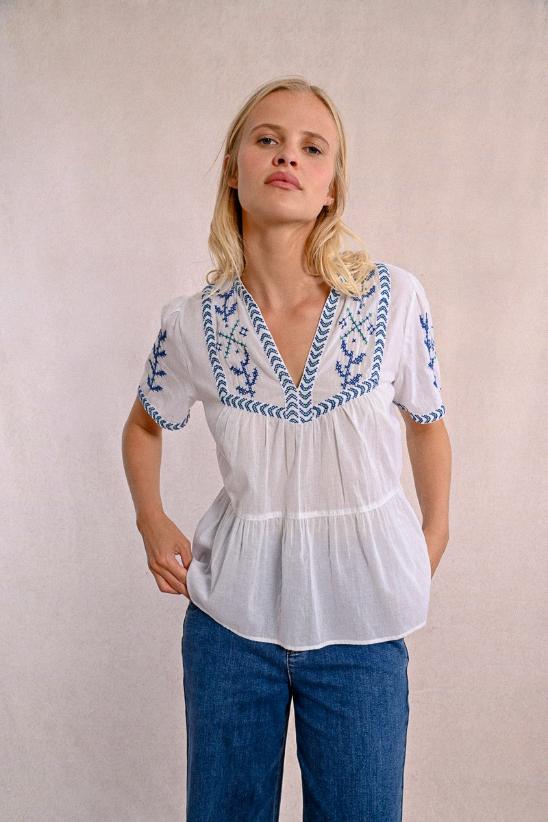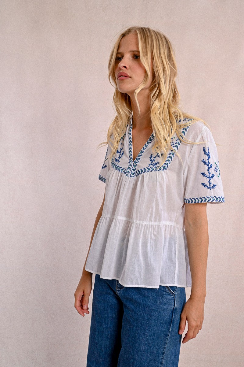 -Poplin top, covered with embroidery