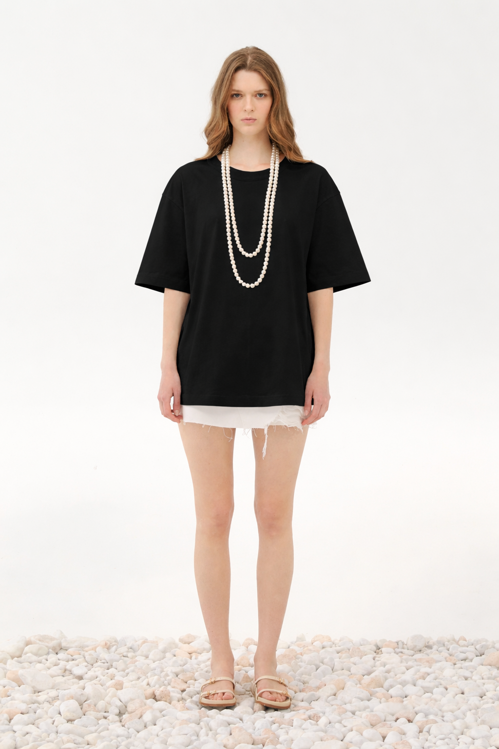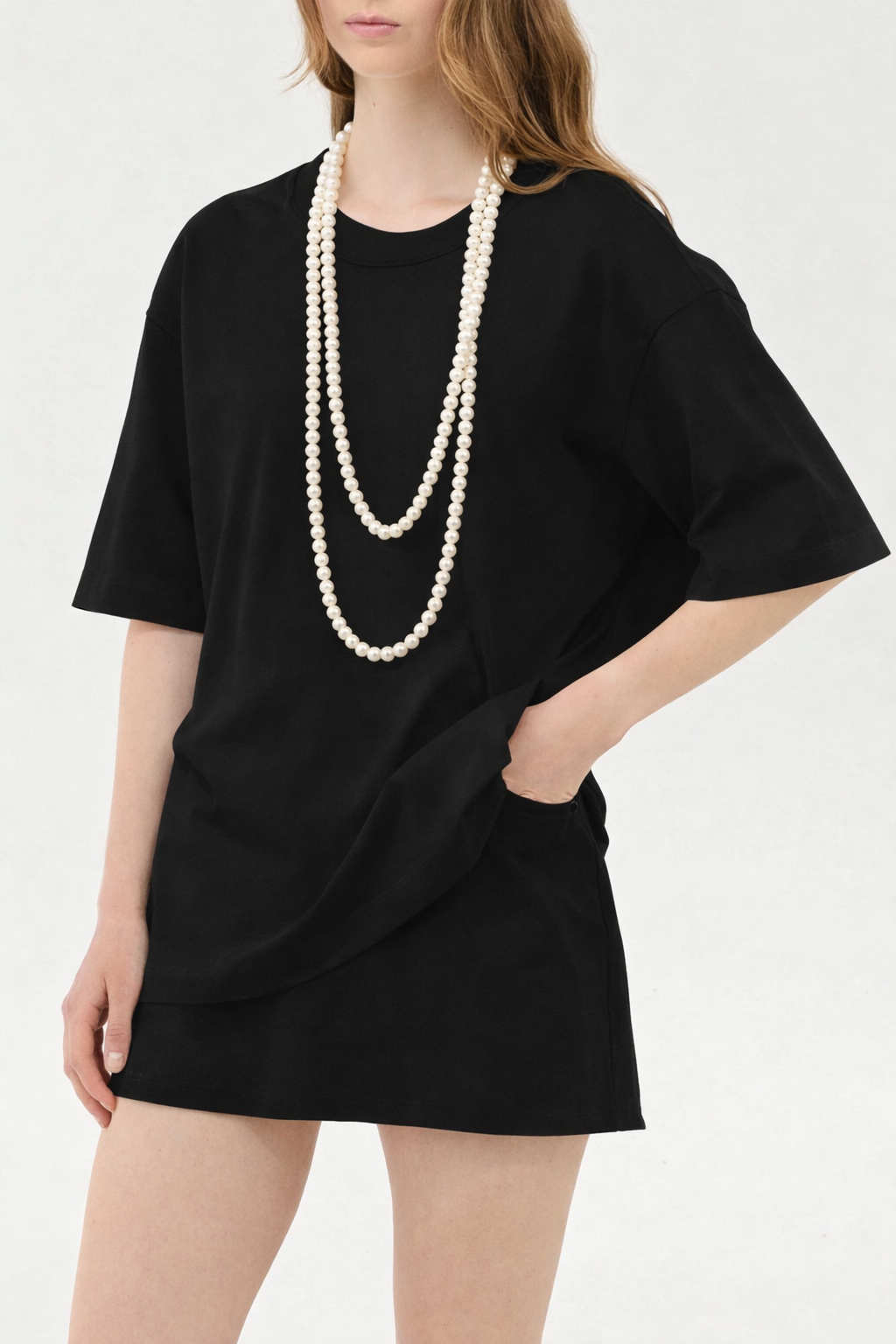 Μπλούζα oversized με αποσπώμενο μαργαριτάρι κολιέ