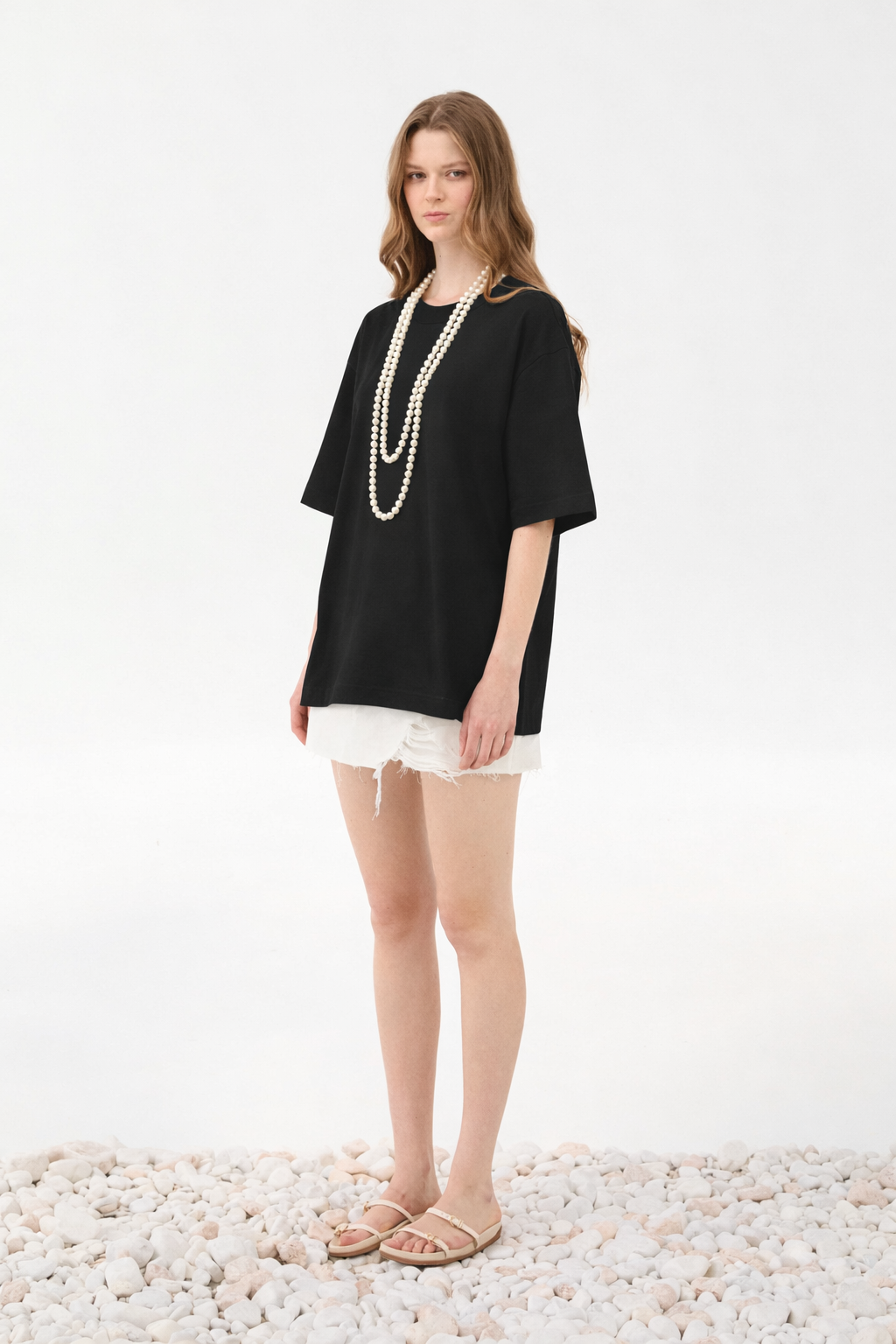 Το απόλυτο statement basic σε μαύρο. Αυτό το oversized t-shirt συνδυάζει minimal αισθητική με σύγχρονη γραμμή, προσφέροντας άνεση και στιλ σε κάθε εμφάνιση.