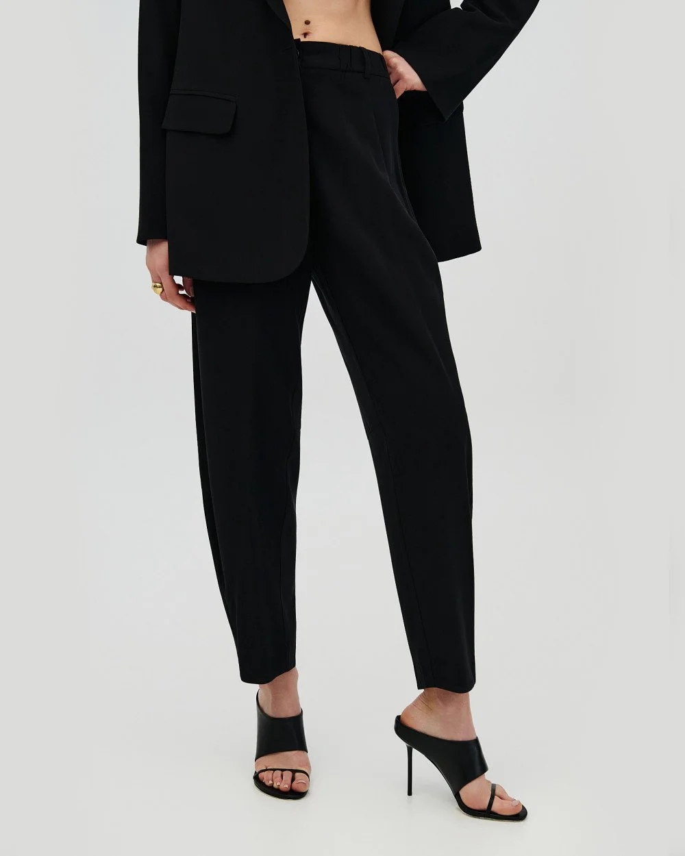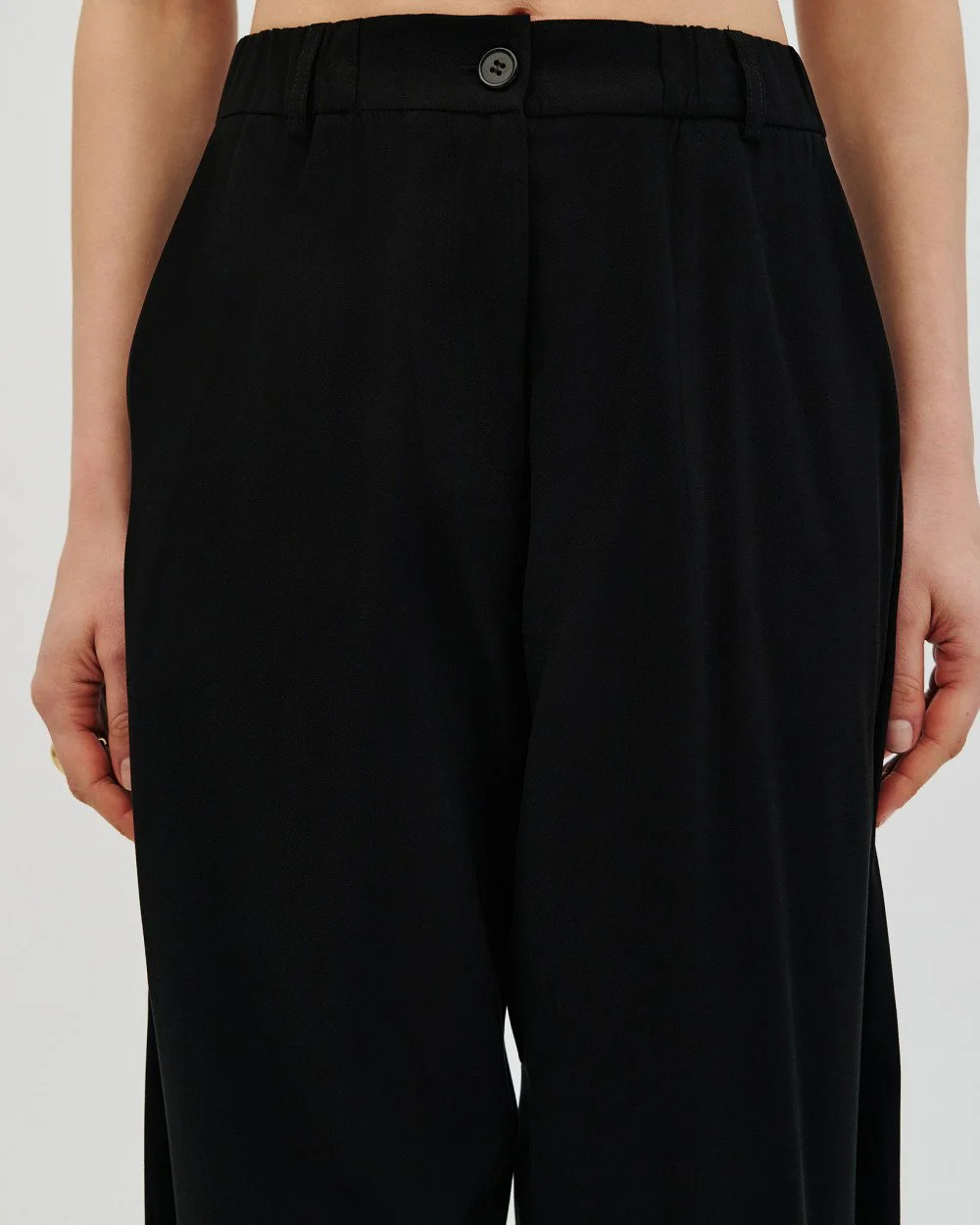 Carrot παντελόνι με πλαϊνές τσέπες, ελαστική μέση και θηλύκια για ζώνη. Διαθέτει διακοσμητικές ραφές και κλείσιμο με φερμουάρ και κουμπί στο μπροστινό μέρος.