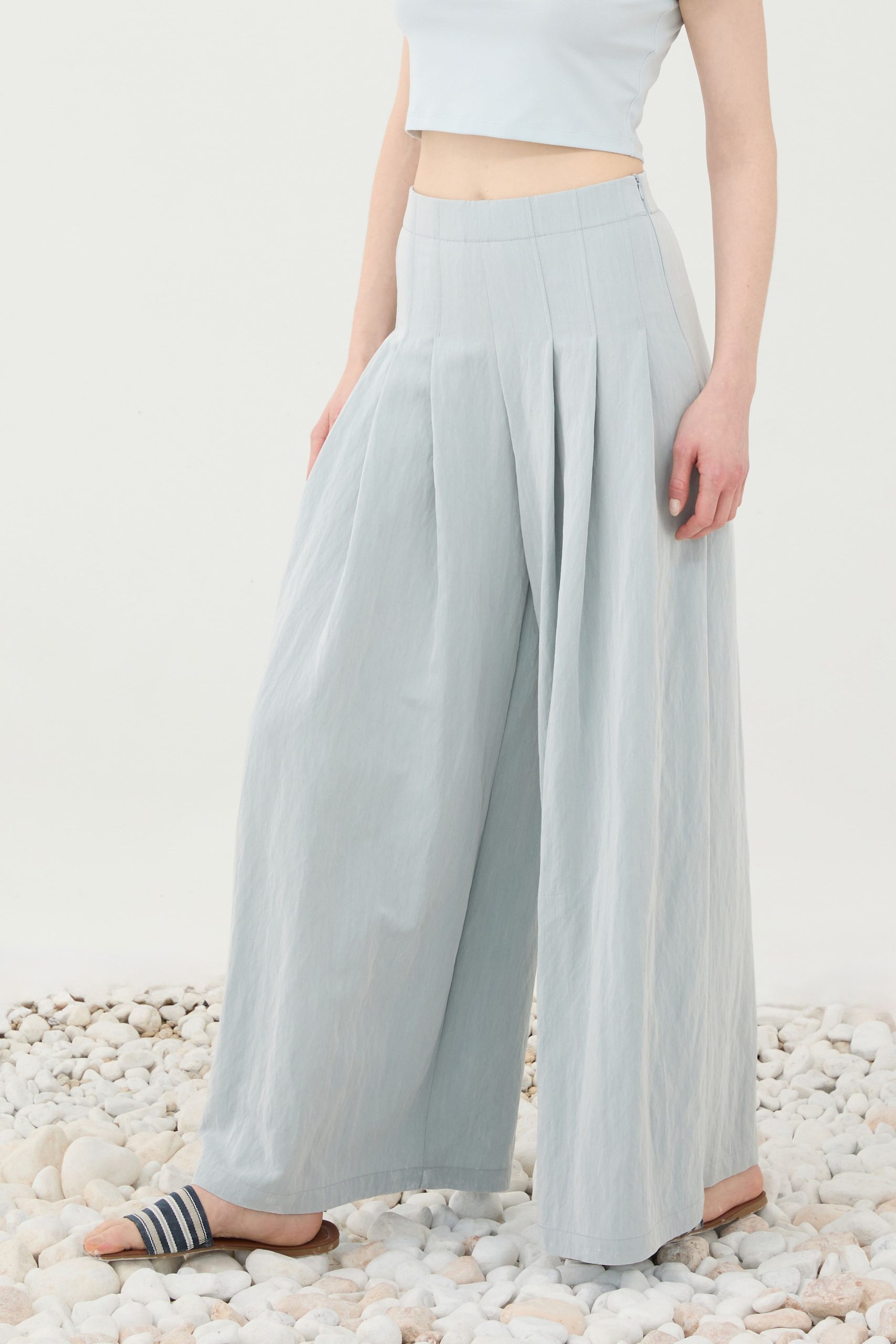 Αέρινη και κομψή παντελόνα σε χαλαρή γραμμή, σχεδιασμένη για να χαρίζει άνεση και διαχρονικό στυλ. Η ψηλόμεση εφαρμογή αγκαλιάζει απαλά τη μέση, ενώ οι διακριτικές πιέτες μπροστά προσθέτουν κίνηση και κομψότητα στη σιλουέτα. Η wide leg γραμμή δημιουργεί μια ρευστή, θηλυκή αίσθηση σε κάθε βήμα, καθιστώντας το ιδανικό κομμάτι για minimal chic εμφανίσεις από το πρωί έως το βράδυ.