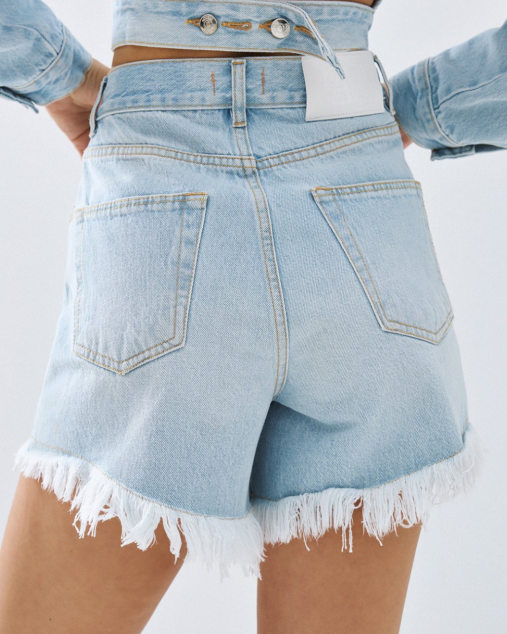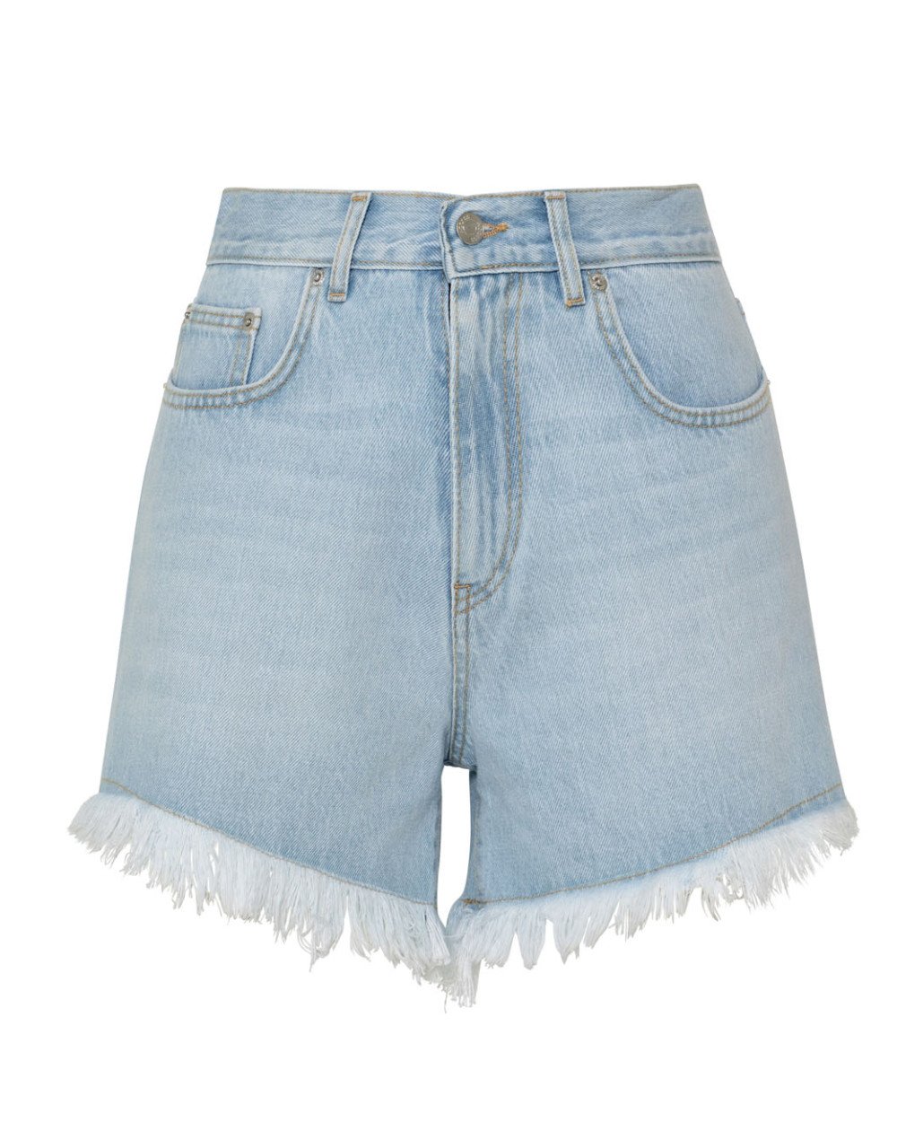Denim σορτς με ξέφτια στο τελείωμα και πλαϊνές τσέπες. Διαθέτει patch τσέπες πίσω, θηλύκια και κλείσιμο με φερμουάρ και κουμπί μπροστά.