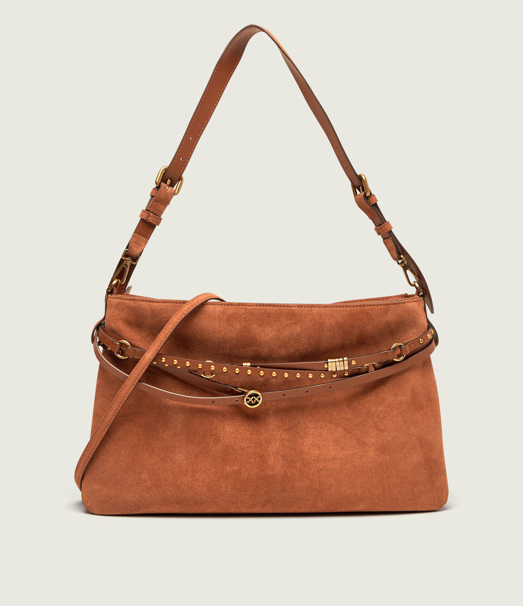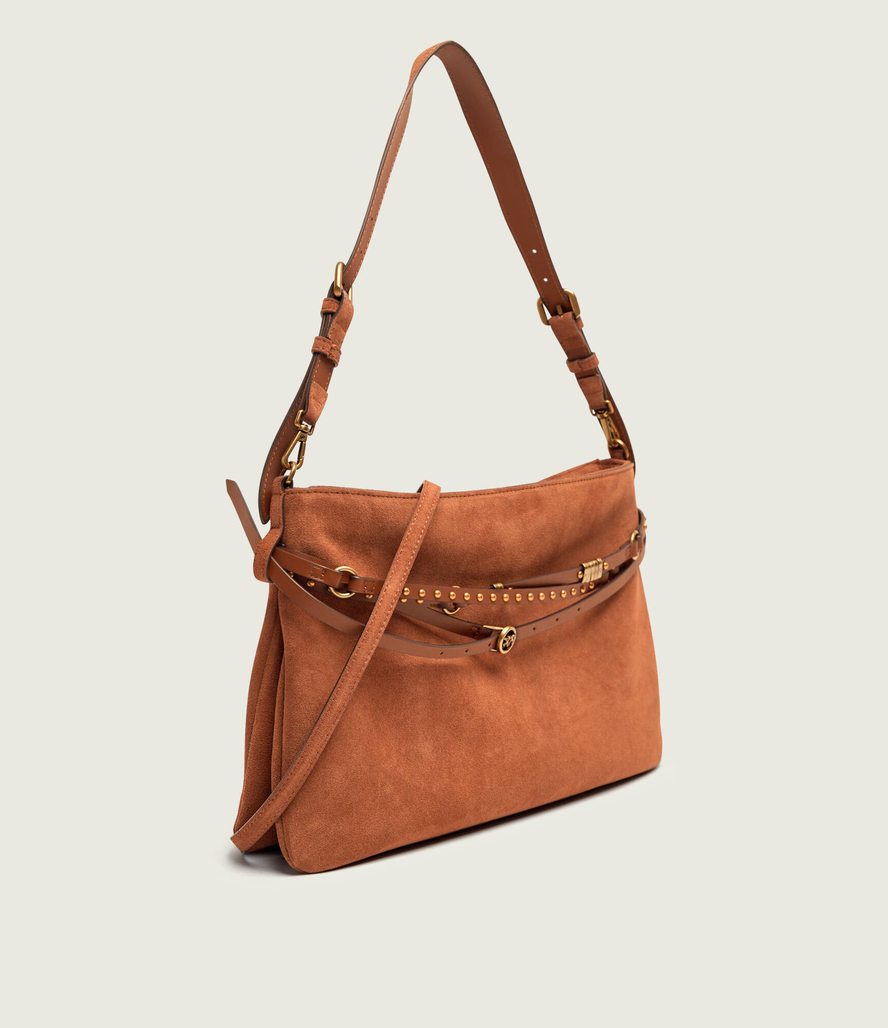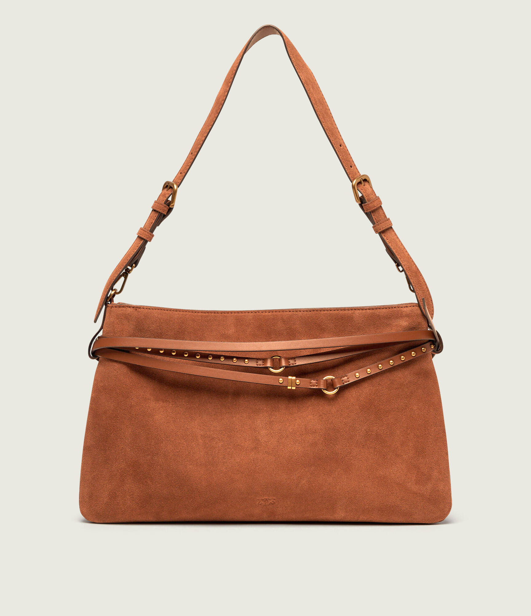 Σουέτ shoulder belt bag με λεπτομέρειες και λουριά