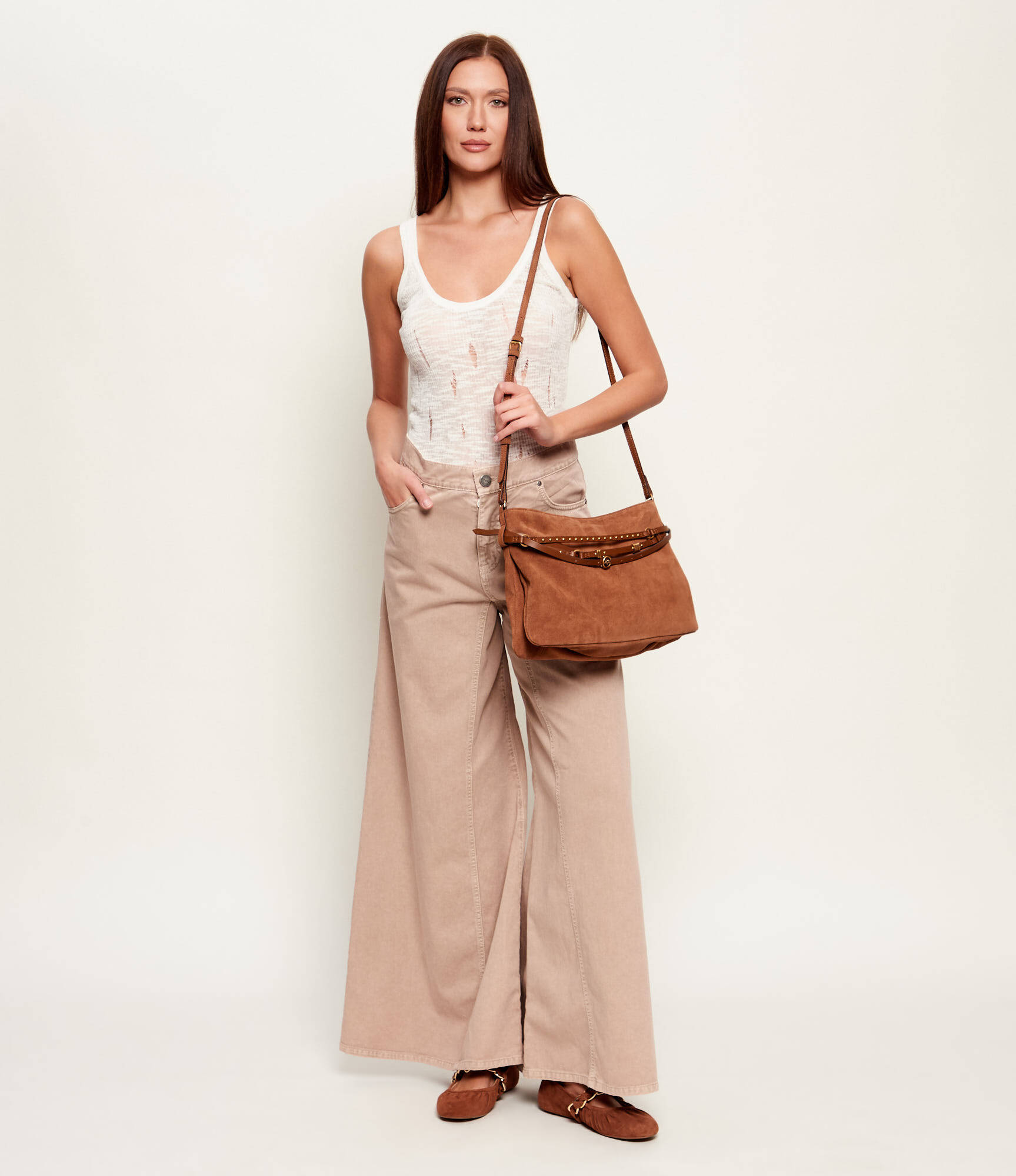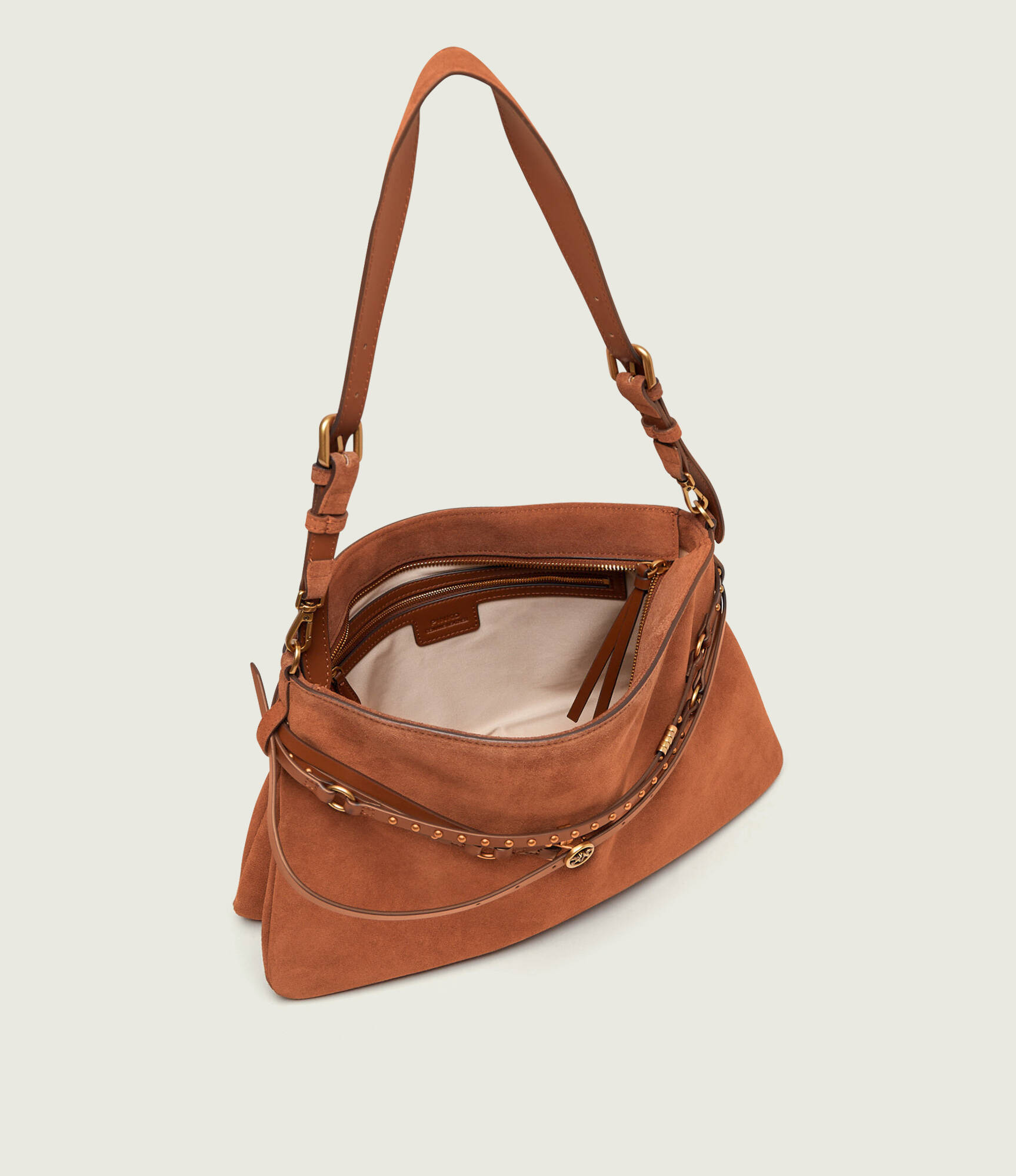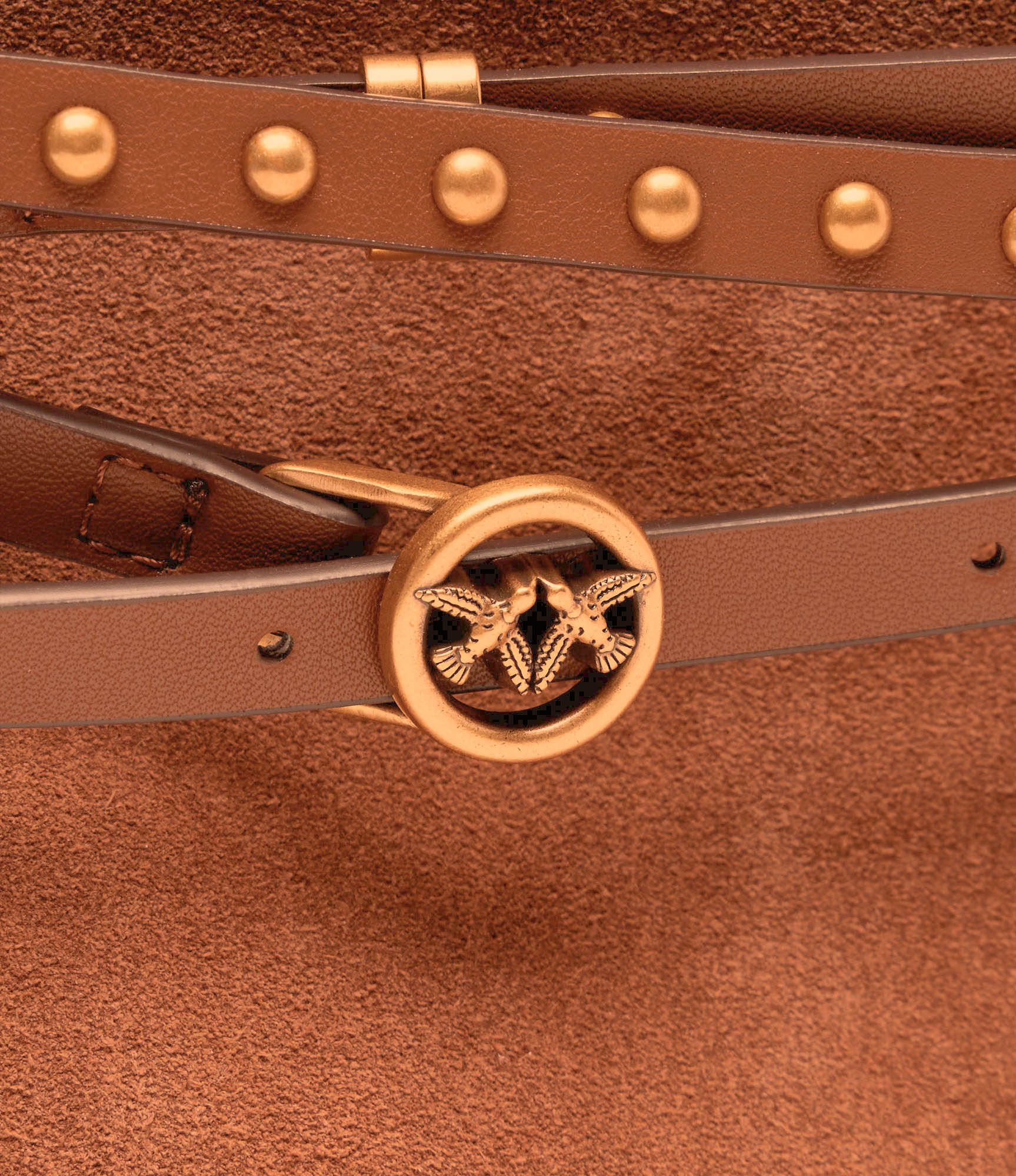 Σουέτ shoulder belt bag με λεπτομέρειες και λουριά