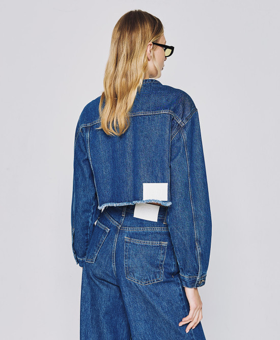 Κοντό denim τζάκετ με μακριά φουσκωτά μανίκια. Διαθέτει μάο γιακά και τσέπες με καπάκι και κουμπί μπροστά. Επιλέξτε το για να ολοκληρώσετε κάθε ανοιξιάτικη εμφάνιση.