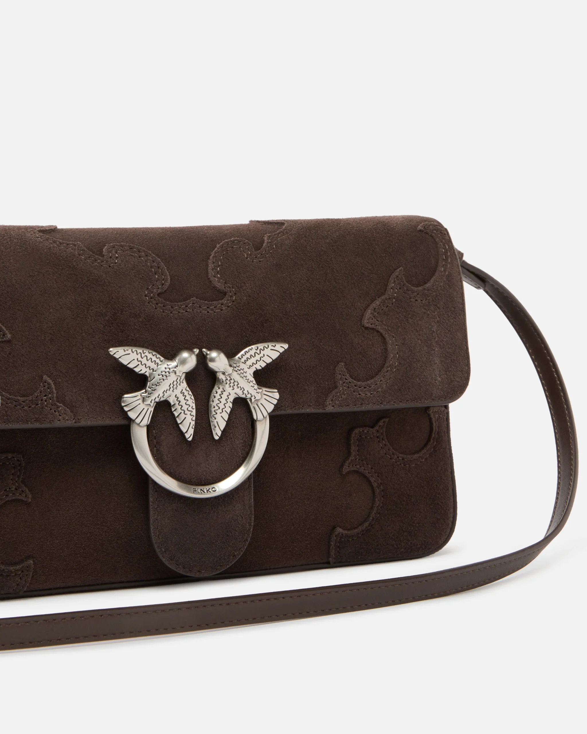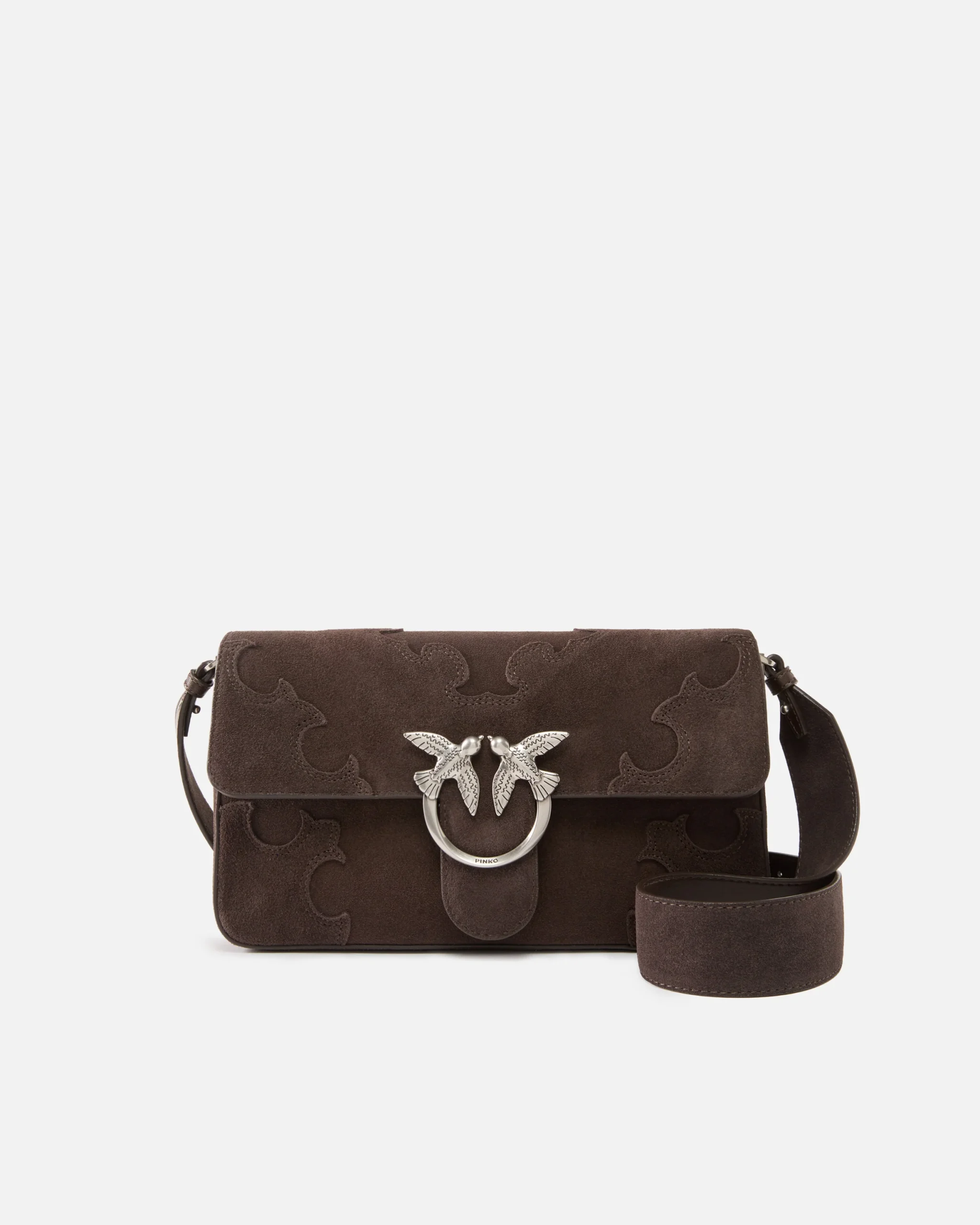 Τσάντα ώμου Love Bag One Slouchy μεσαίων διαστάσεων, κατασκευασμένη από μαλακό σουέτ δέρμα με εκλεπτυσμένα διακοσμητικά τμήματα στο κυρίως σώμα της τσάντας και στο καπάκι. Εξαιρετικά κομψή και πρακτική ταυτόχρονα, η τσάντα διαθέτει αφαιρούμενο λουρί από σουέτ και λείο δέρμα, πιο χοντρό, και ένα αφαιρούμενο δερμάτινο λουρί, πιο λεπτό, που δίνουν την επιλογή μεταφοράς στον ώμο ή χιαστί, και κλείσιμο διακοσμημένο με τη διαχρονική αγκράφα με το λογότυπο Love Birds Diamond Cut. Το εσωτερικό είναι φοδραρισμένο με βαμβακερό ντρίλι και έχει τσέπη στο τοίχωμα που κλείνει με φερμουάρ. Ενεργοποιήστε την τσάντα σας PINKO: επαληθεύστε τη γνησιότητα του προϊόντος σας και αποκτήστε πρόσβαση στην εξατομικευμένη εμπειρία πλησιάζοντας το smartphone σας στο κέντημα Love Birds στην πίσω πλευρά της τσάντας!
