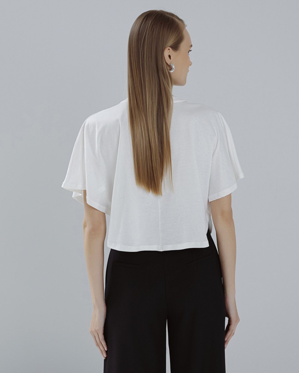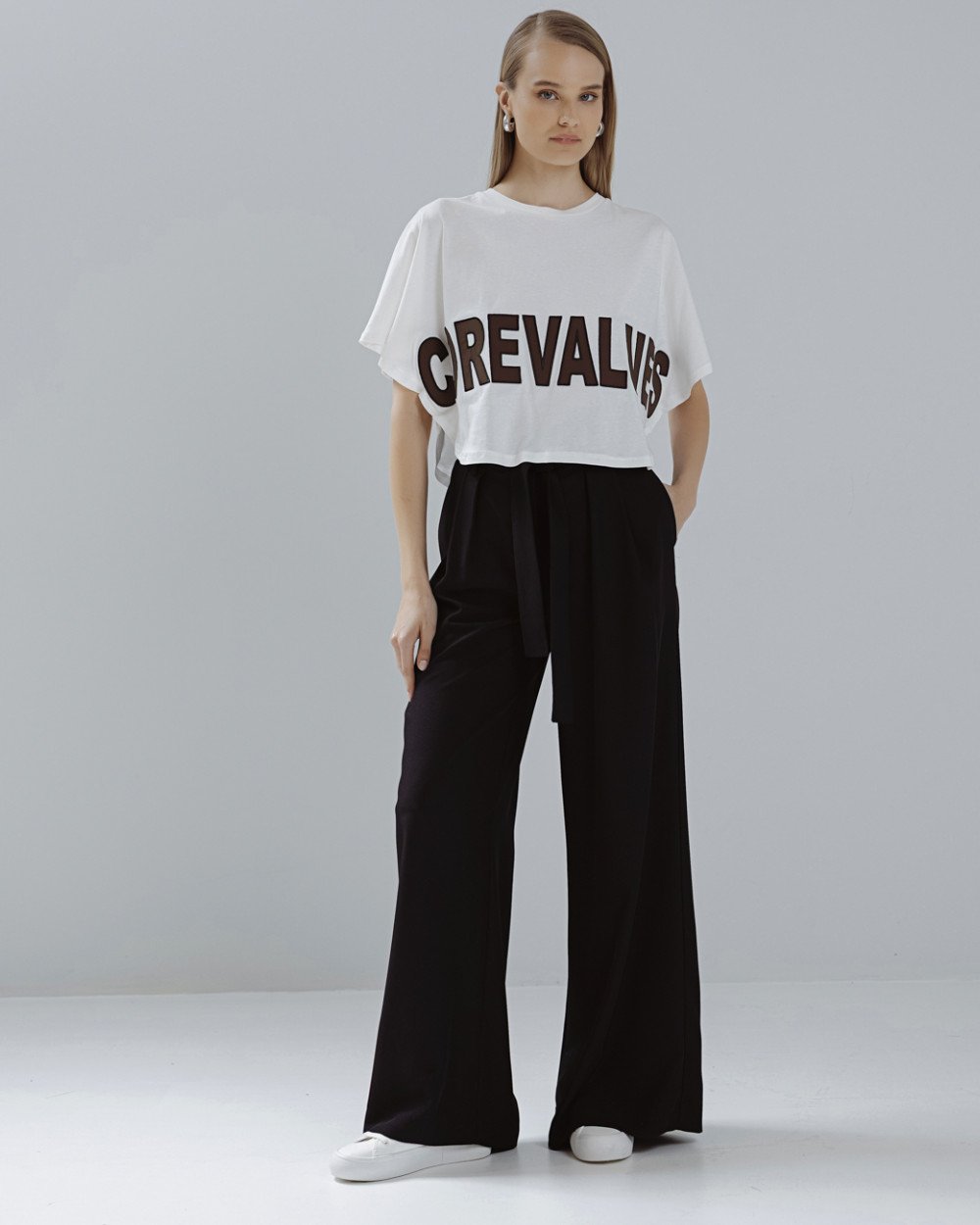Κροπ t-shirt με κοντά μανίκια, κεντήματα στο μπροστινό μέρος και στρογγυλό τελείωμα.