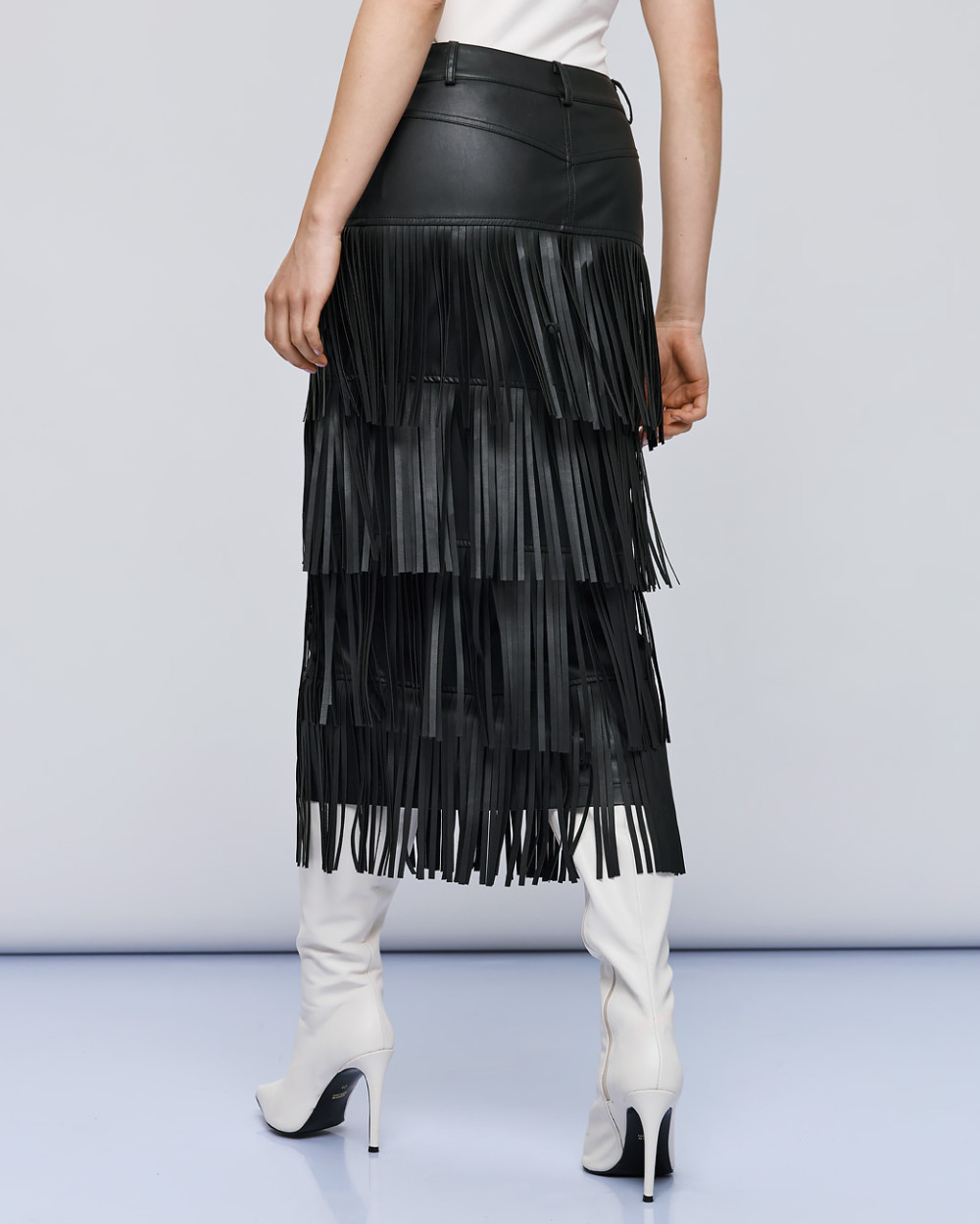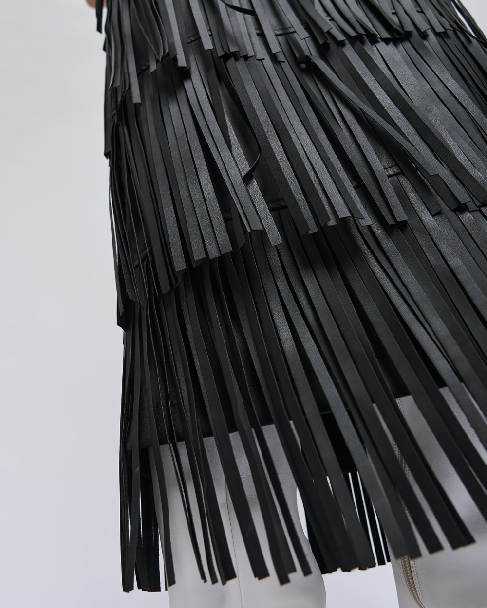 Φούστα όψης δέρματος με κρόσσια