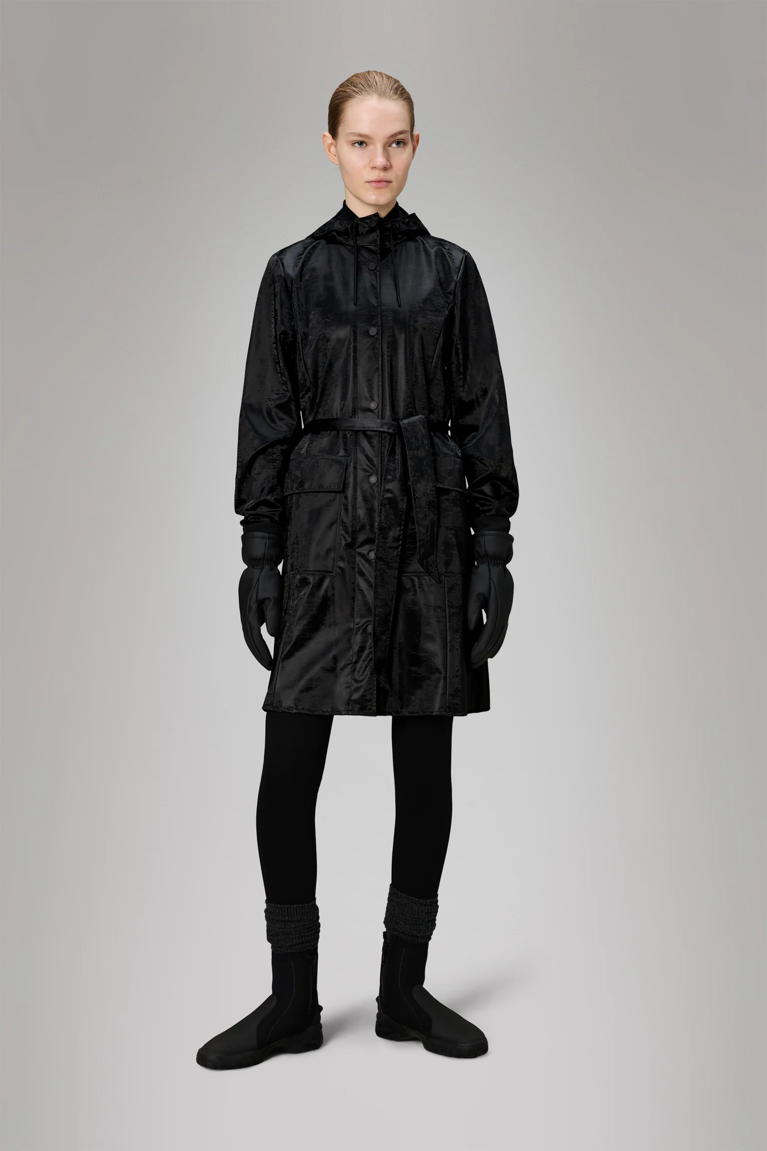 This design with a minimal silhouette is Rains’ interpretation of the women’s trenchcoat. The design is figure-flattering with high functionality.