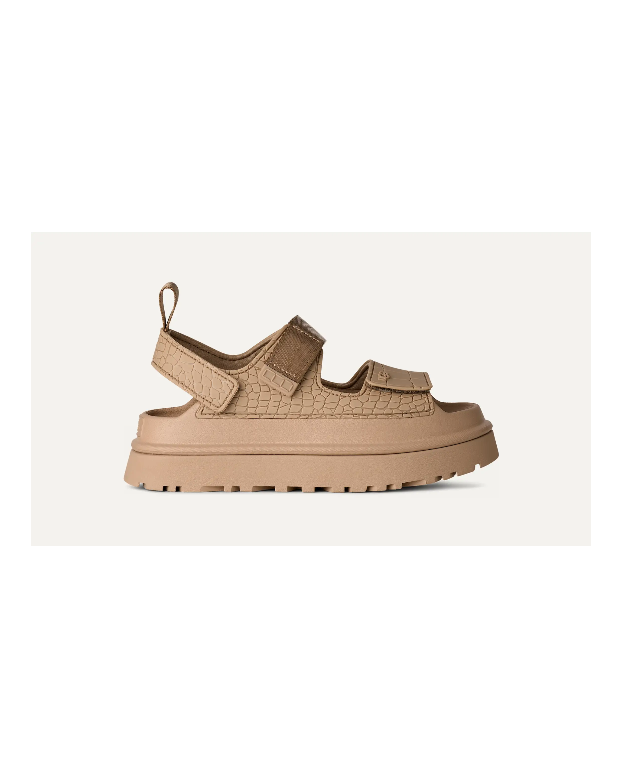 Είσαι μοναδική. Το ανάγλυφο σανδάλι μας GoldenGlow διαθέτει ανάγλυφη εκτύπωση κροκόδειλου που είναι μοναδική για κάθε ζευγάρι και τόσο ξεχωριστή όσο εσύ. Η εξωτερική σόλα είναι κατασκευασμένη από εξαιρετικά ελαφρύ EVA ζαχαροκάλαμου, ενώ τα λουράκια και η άνω επένδυση είναι κατασκευασμένα από 100% ανακυκλωμένες ίνες για ατελείωτη άνεση και αίσθημα ευεξίας.