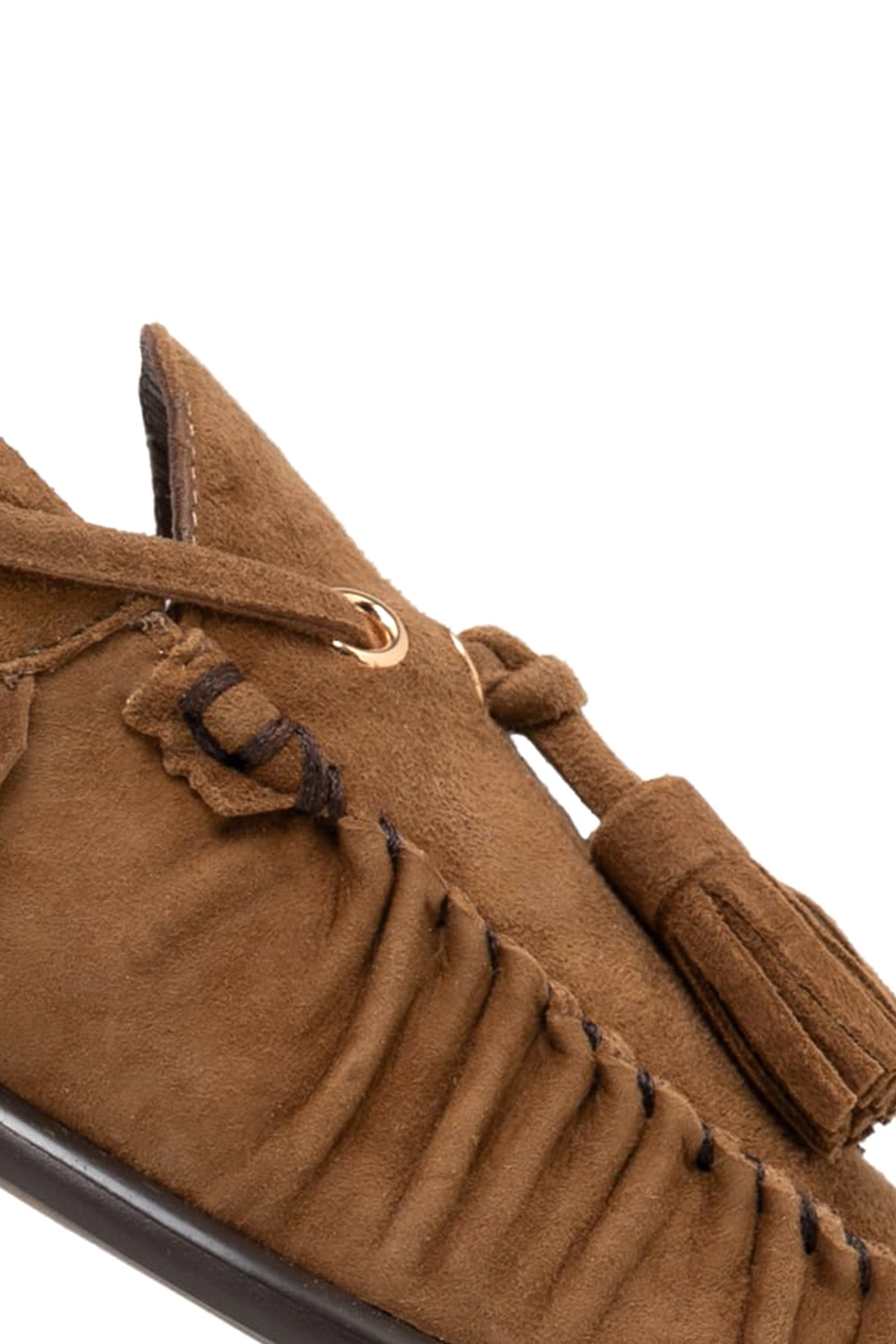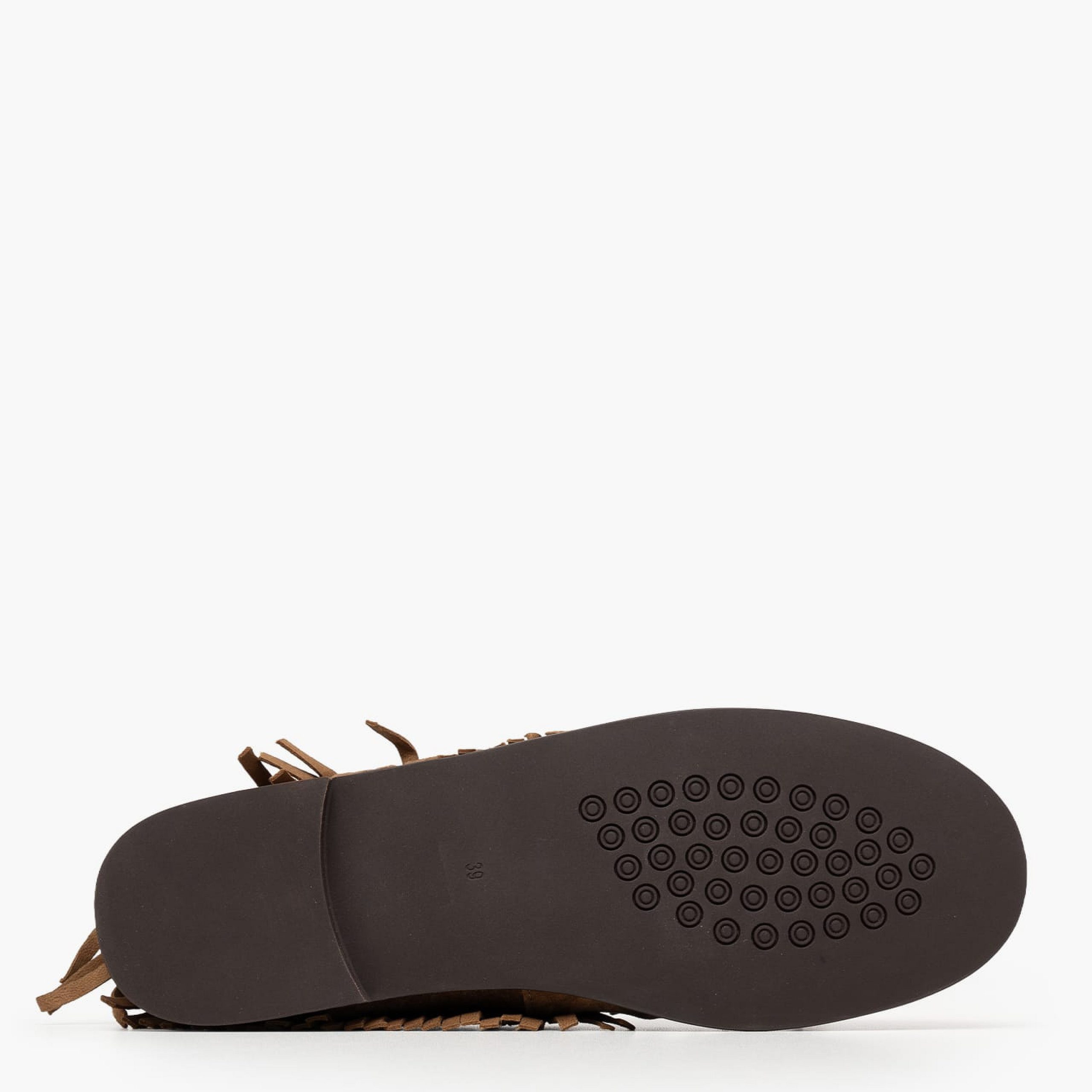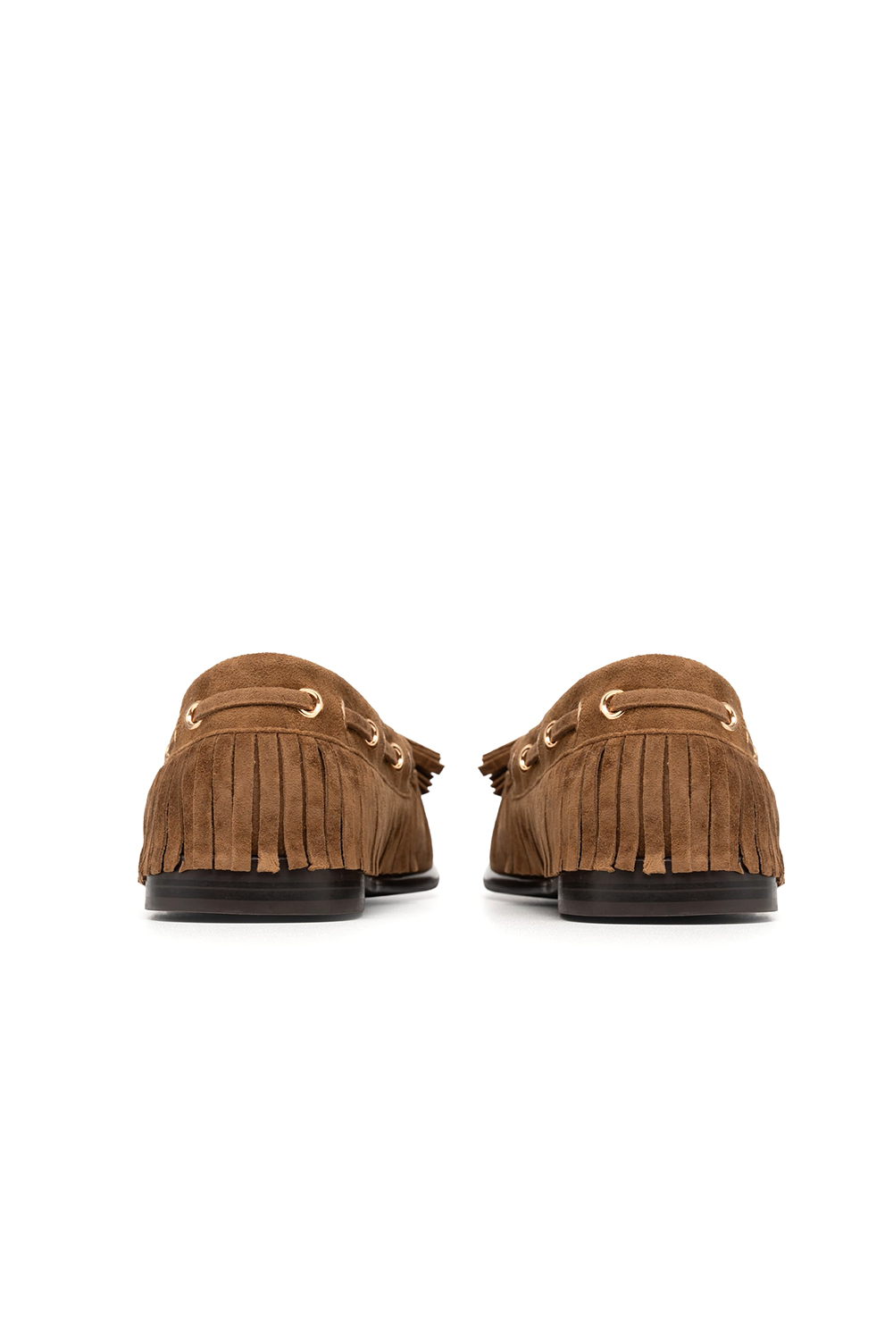 Ένα ιδιαίτερο flat σχέδιο που συνδυάζει άνεση και στιλ, ιδανικό για καθημερινές αλλά και πιο προσεγμένες εμφανίσεις. Διαθέτει κλασική γραμμή moccasin, διακοσμητικά κορδόνια με χρυσές λεπτομέρειες, κρόσσια στο πλάι και tassels στο επάνω μέρος που χαρίζουν boho chic χαρακτήρα. Η μαλακή υφή του και η επίπεδη σόλα το κάνουν ιδανική επιλογή για όλες τις ώρες της ημέρας.