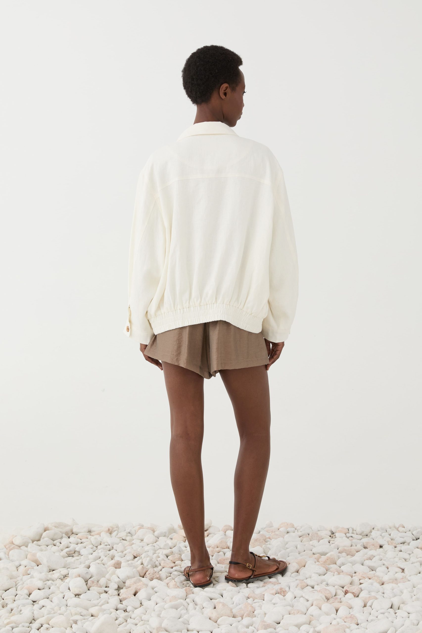 Το απόλυτο γυναικείο ελαφρύ jacket που θα φοράς non-stop. Σε διαχρονική εκρού απόχρωση και minimal γραμμή, είναι το ιδανικό ανοιξιάτικο πανωφόρι για καθημερινά chic looks.