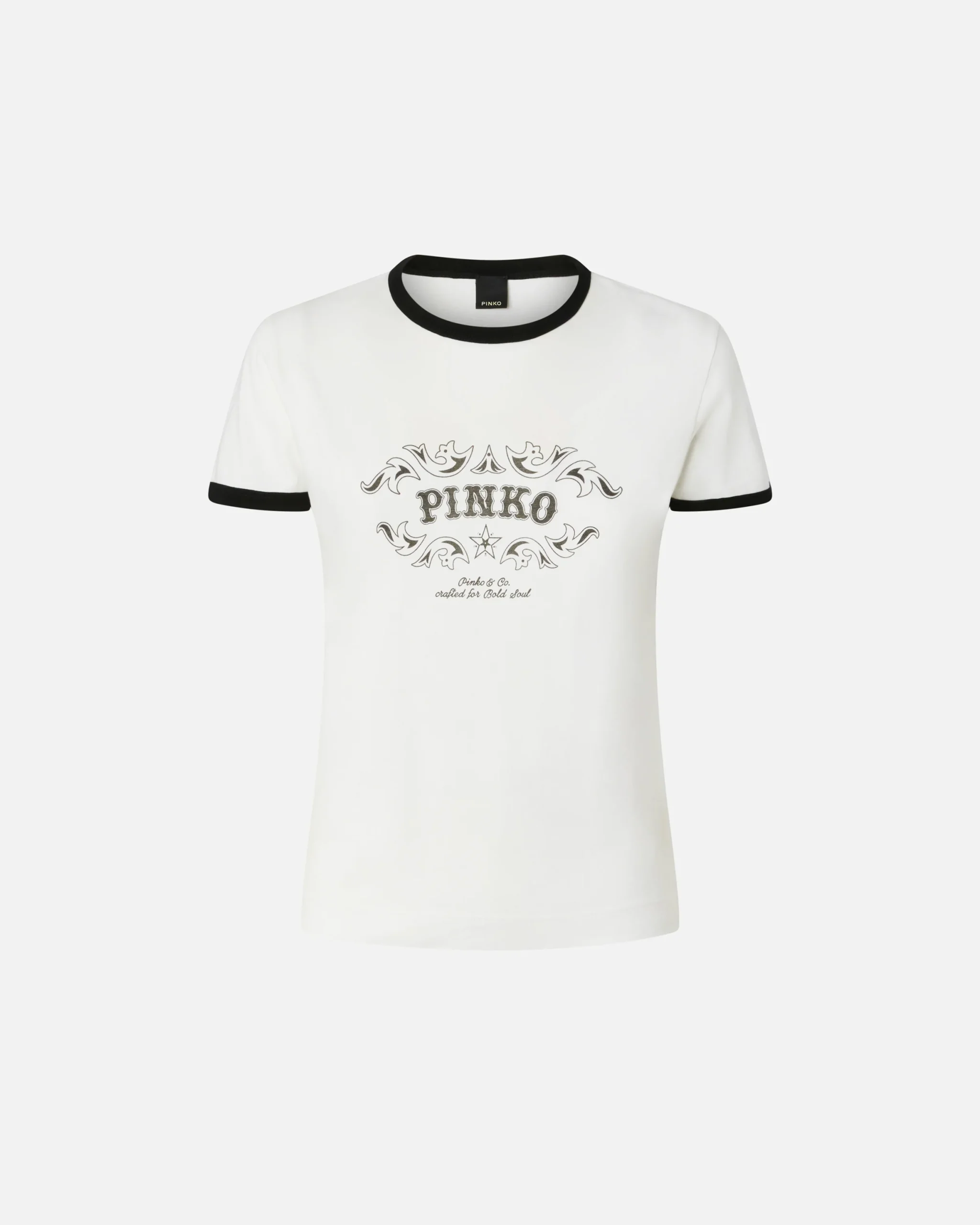 Κοντομάνικο t-shirt από καθαρό βαμβακερό ζέρσεϊ ύφασμα με στρογγυλή λαιμόκοψη. Το t-shirt είναι διακοσμημένο με μια στάμπα με το λογότυπο μπροστά, ενώ το περίγραμμα διαφορετικού χρώματος στον γιακά και στην άκρη των μανικιών χαρίζει επιπλέον δυναμισμό στο στυλ. Αυτό το t-shirt συνδυάζεται εύκολα με τα αγαπημένα σας παντελόνια, αναβαθμίζοντας το look σας με απλό, κομψό και πρωτότυπο τρόπο.