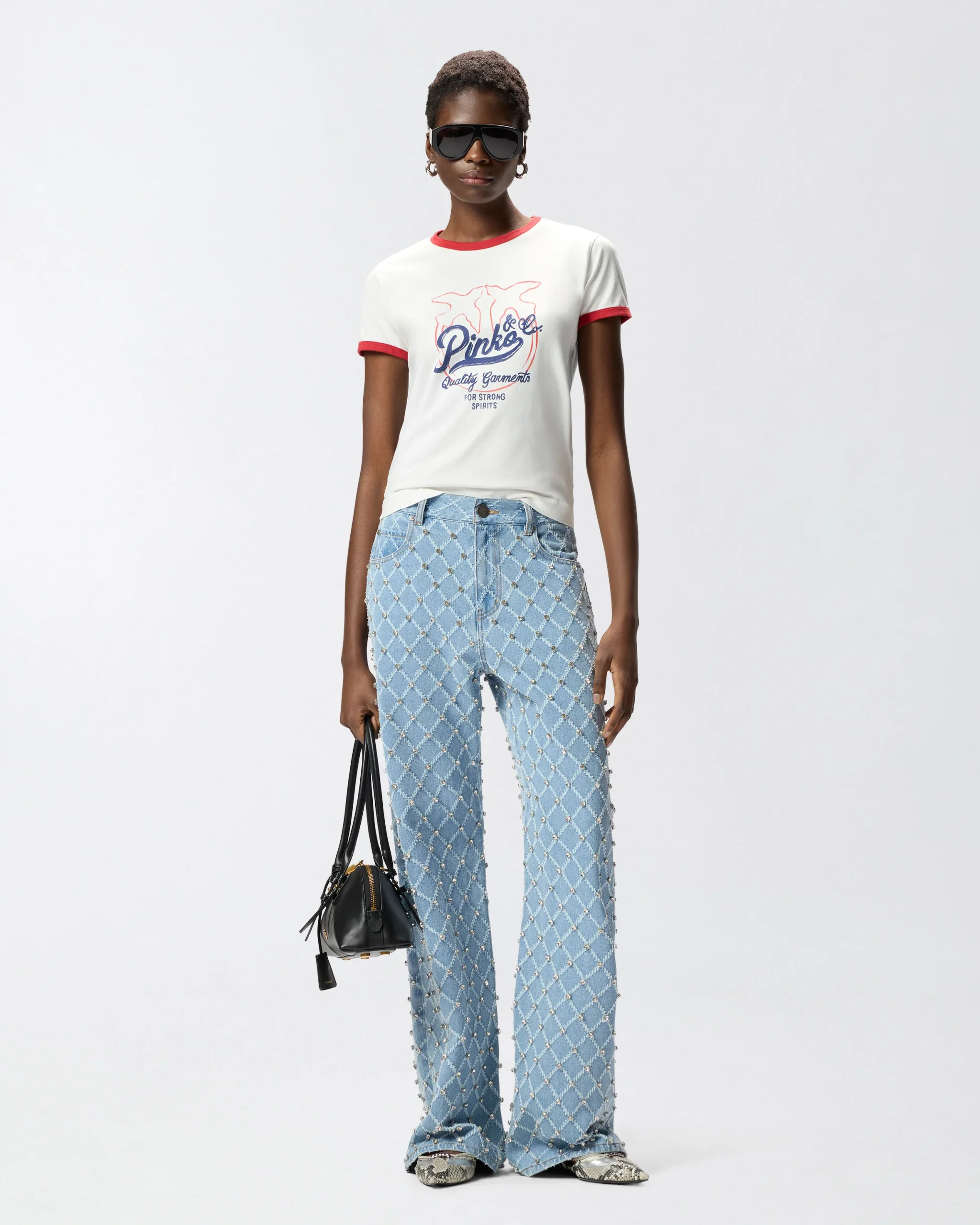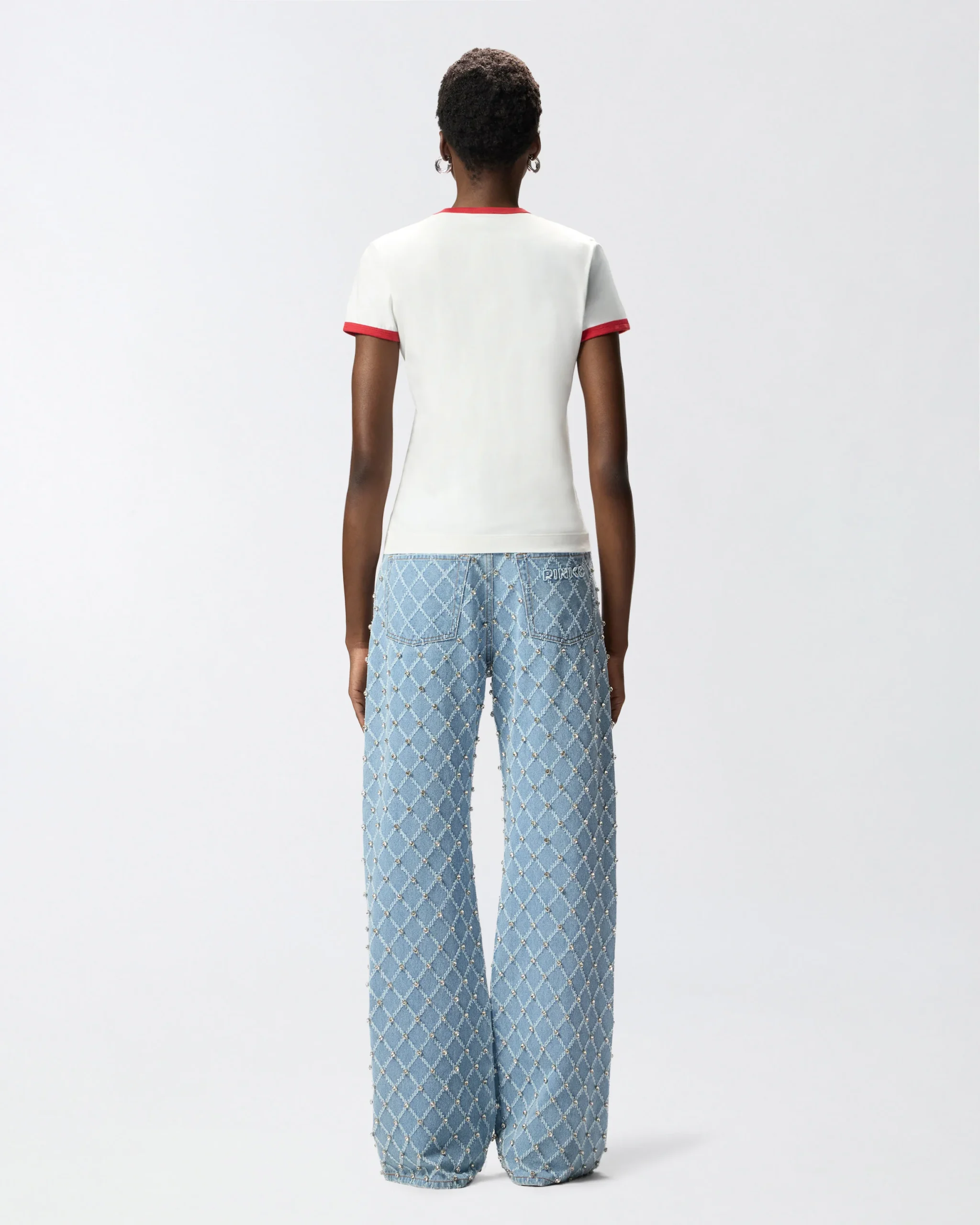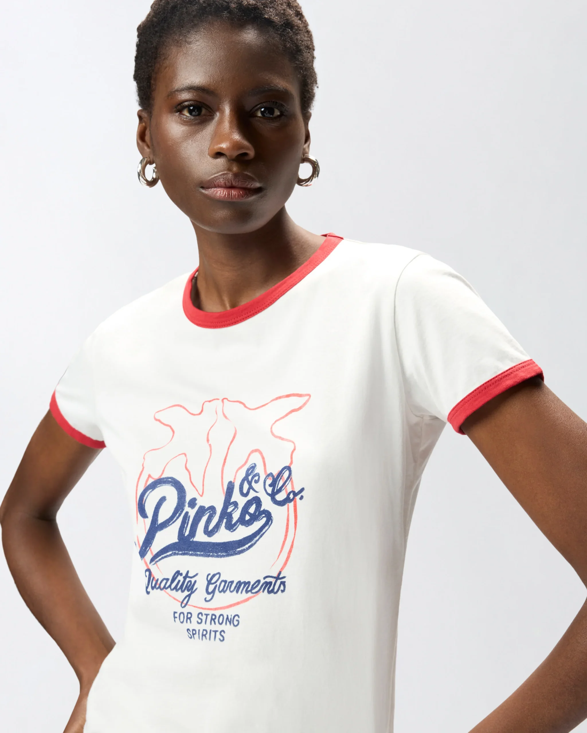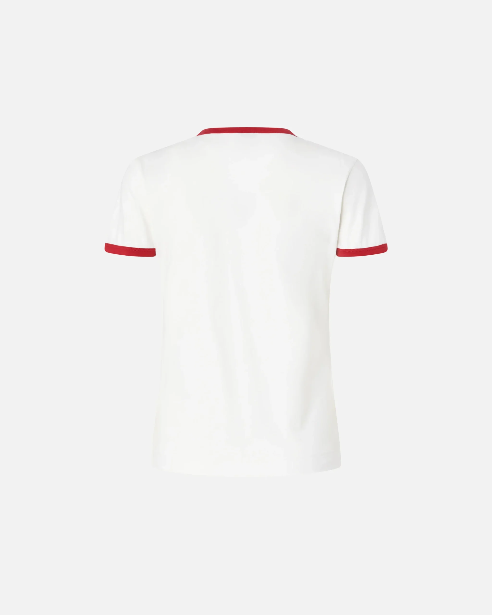 Κοντομάνικο t-shirt από καθαρό βαμβακερό ζέρσεϊ ύφασμα με στρογγυλή λαιμόκοψη. Το t-shirt είναι διακοσμημένο με μια στάμπα με το λογότυπο μπροστά, ενώ το περίγραμμα διαφορετικού χρώματος στον γιακά και στην άκρη των μανικιών χαρίζει επιπλέον δυναμισμό στο στυλ. Αυτό το t-shirt συνδυάζεται εύκολα με τα αγαπημένα σας παντελόνια, αναβαθμίζοντας το look σας με απλό, κομψό και πρωτότυπο τρόπο.