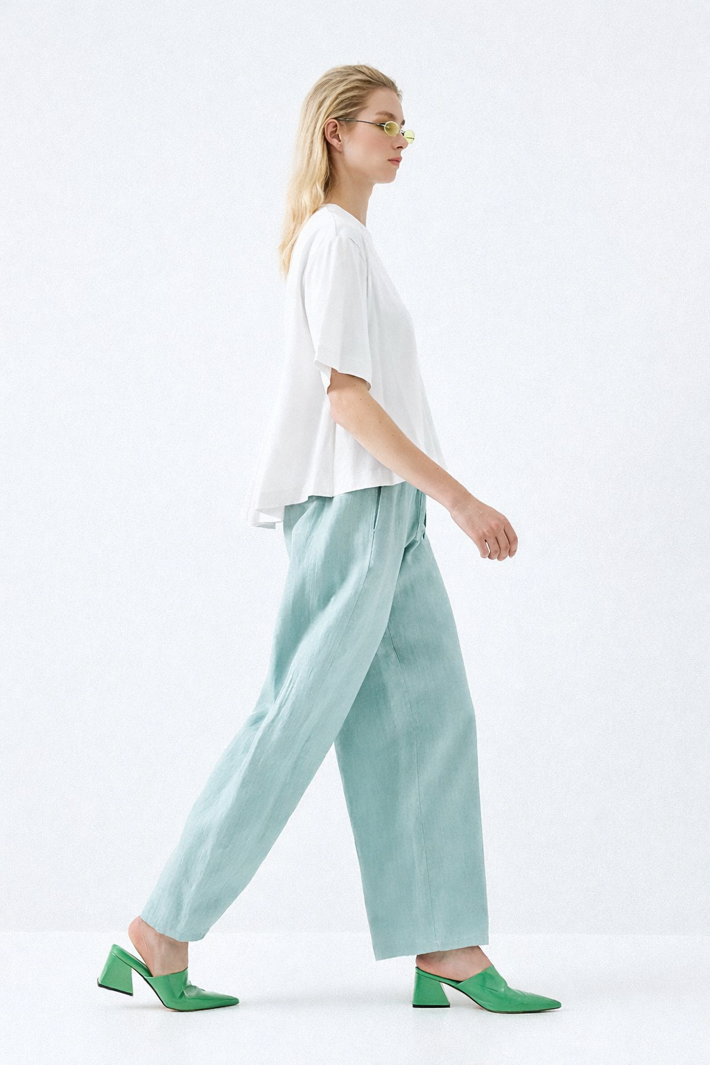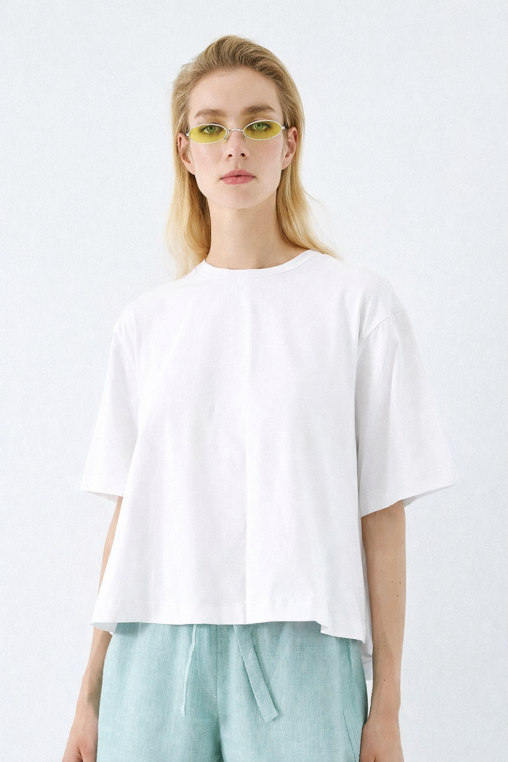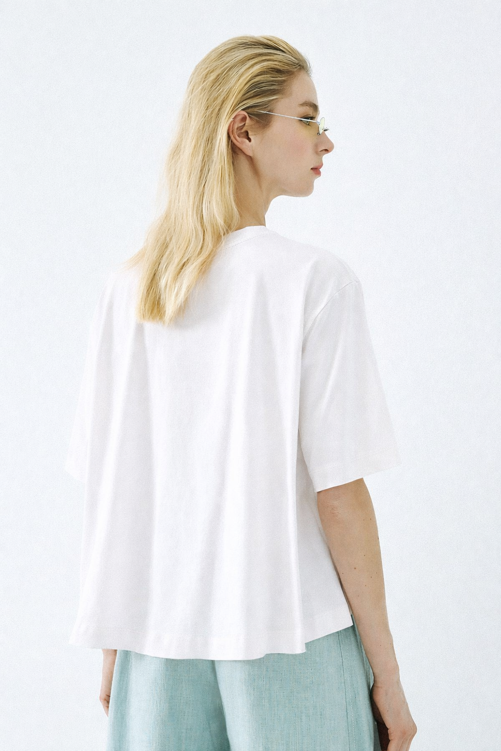 Βαμβακερό κοντομάνικο t-shirt σε φαρδιά, Α-γραμμή με στρογγυλή λαιμόκοψη και στρογγυλό τελείωμα.