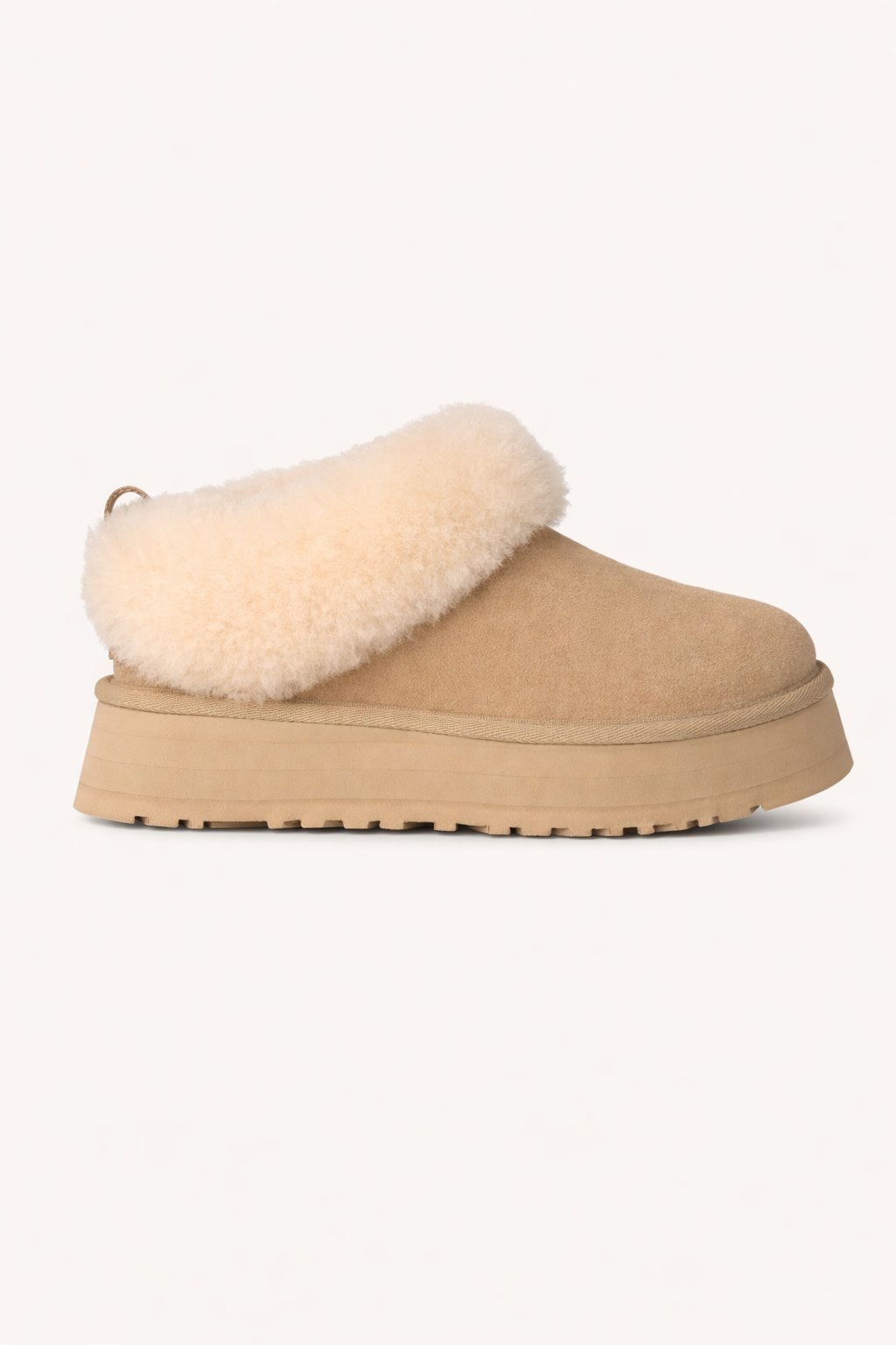 Λατρεύετε το Tazz αλλά θέλετε ακόμα περισσότερη ζεστασιά από την UGG®; Το Tazzelle μας είναι αυτό που σας ταιριάζει. Αυτή η εξαιρετικά βελούδινη παντόφλα εσωτερικού και εξωτερικού χώρου διαθέτει γνήσιο σουέτ και μια ελαφριά πλατφόρμα 1,75″ κατασκευασμένη από ελαστικό EVA ζαχαροκάλαμου. Δέρμα προβάτου επενδύει το εσωτερικό και συνεχίζει στην πλούσια σταθερή μανσέτα, ώστε να μπορείτε να τα φορέσετε με κάλτσες ή χωρίς.
