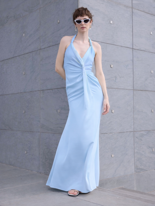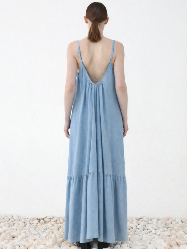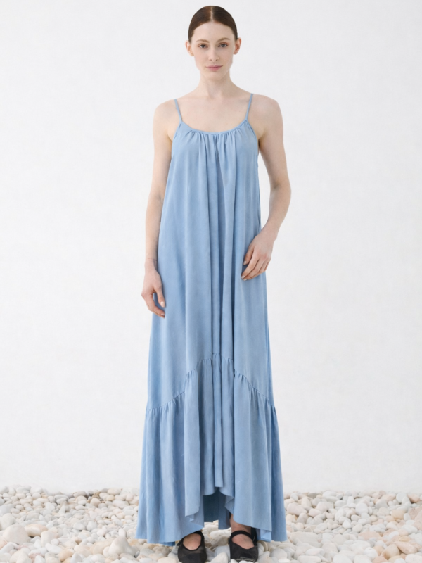 Φόρεμα μάξι με τιράντες και βολάν