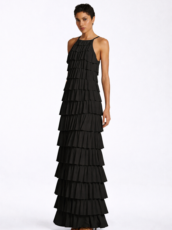 Φόρεμα μάξι halter με βολάν