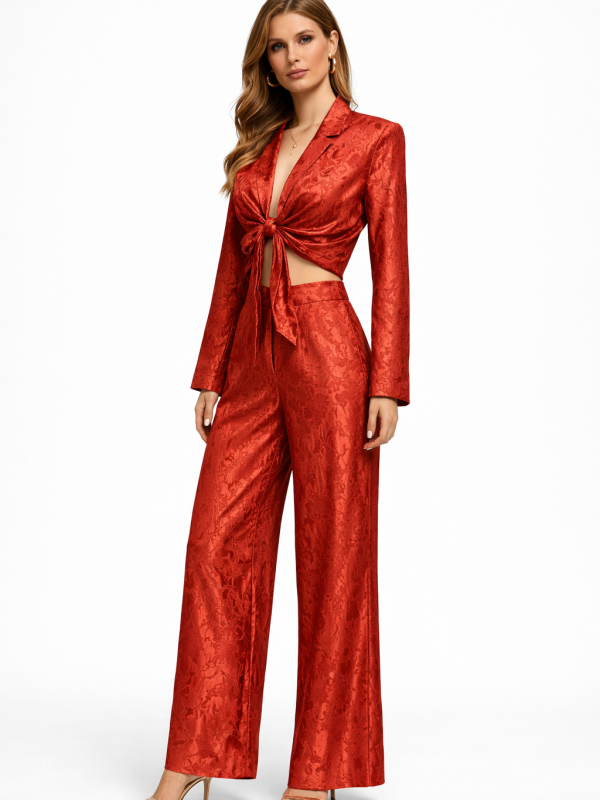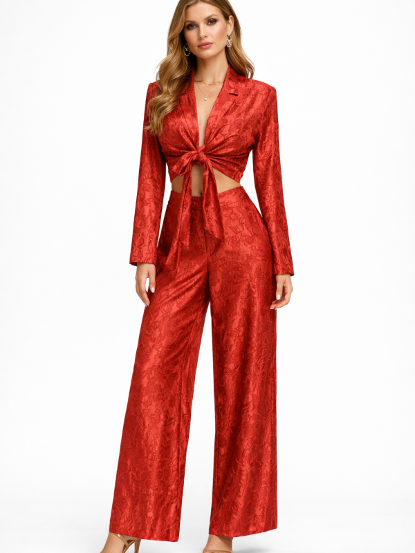 Σατέν σετ Jacquard με δέσιμο μπροστά και παντελόνι με λάστιχο